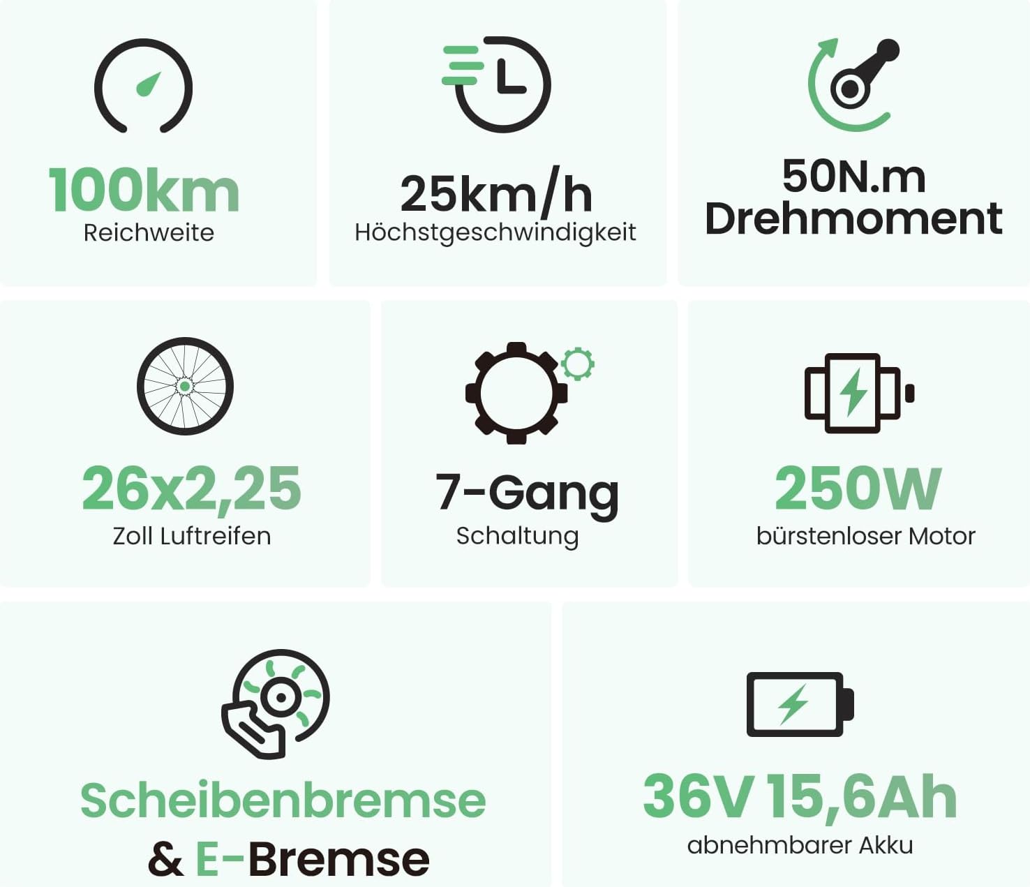 - Extras: inkl. Akku & Motor (bei E-Bikes)