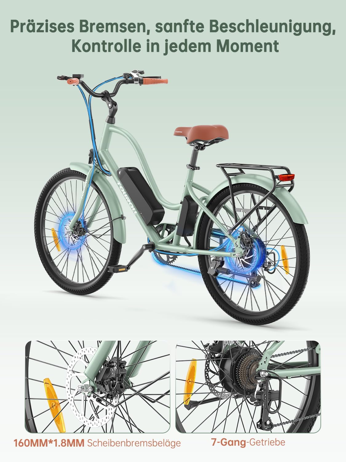 Top-Angebot: Touroll B2 26 Inch City E-Bike with 250 W 50 N.M Motor and 36 V 561.6 Wh Removable Battery Pedelec City Bikes Electric Bicycle, 25 km/h, Range 100 km, Ebikes for Adults Men and Women City Commuters