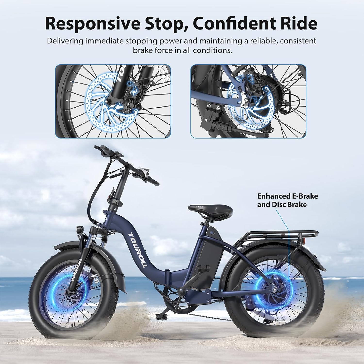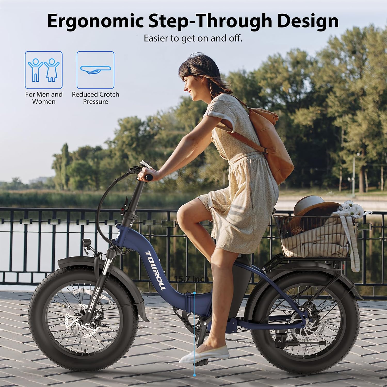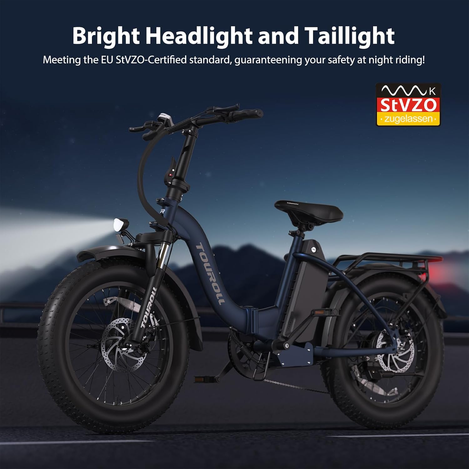 Mit dem Touroll Folding Bike E Bike, 20 x 4 Inch Electric Bicycles with 48 V 15 Ah Battery, 25 km/h, Range up to 120-150 km, 250 W 55 N.M Motor E-Bike with 7 Speed, LCD Display, Electric Bicycle for Men and bekommst du Qualität, Komfort und Stil – perfekt für deine nächste Tour.