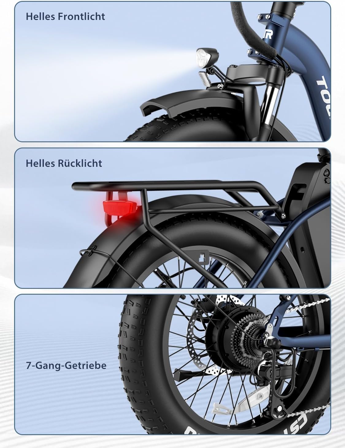 - Extras: Licht, Gepäckträger, Schutzbleche