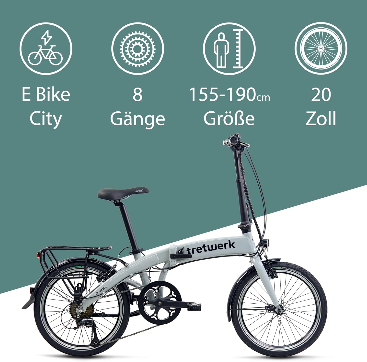 Mit dem TRETWERK – 20 Inch E-Bike Electric Folding Bike – Akimbo – Electric Folding Bike Pedelec with 8 Speed Shimano Acera Derailleur Gear – Folding City Bike Electric Bicycle with Rear Motor 250 W 36 V 360 bekommst du Qualität, Komfort und Stil – perfekt für deine nächste Tour.