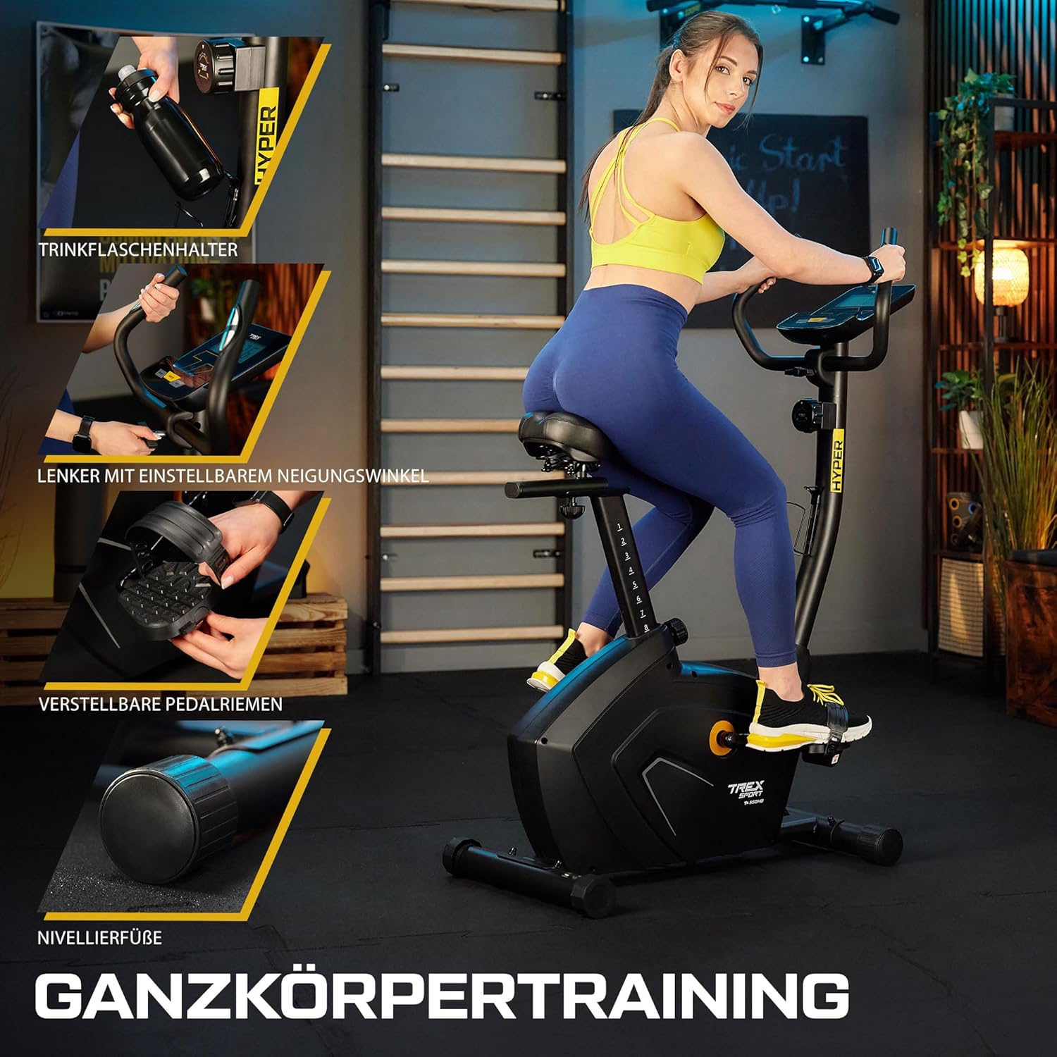 Top-Angebot: TREX SPORT Hyper TX-550MB Home Trainer Bicycle Pulse Sensors, Extremely Quiet Magnetic Brake System with 16 Resistance Levels, 10 Seat Heights, 120 kg Load Capacity