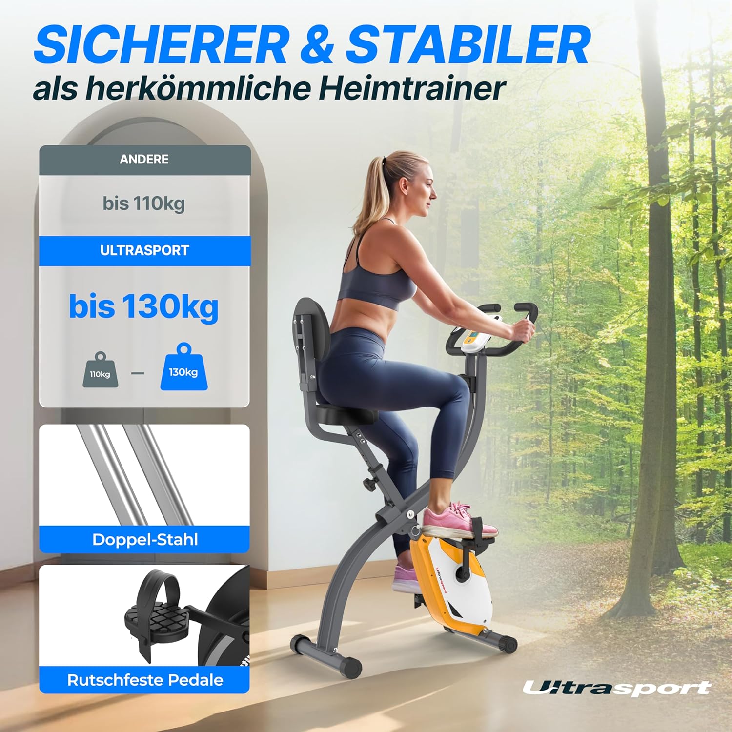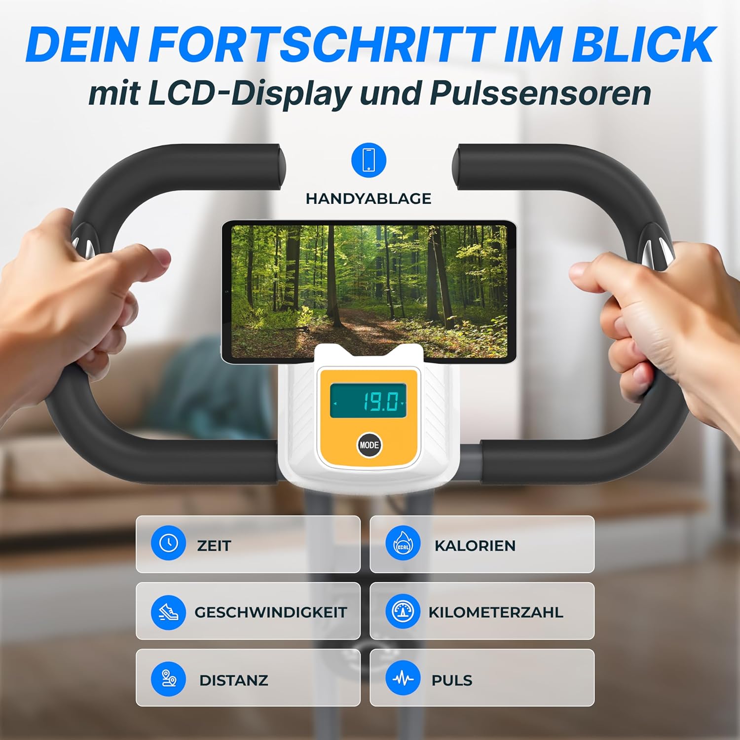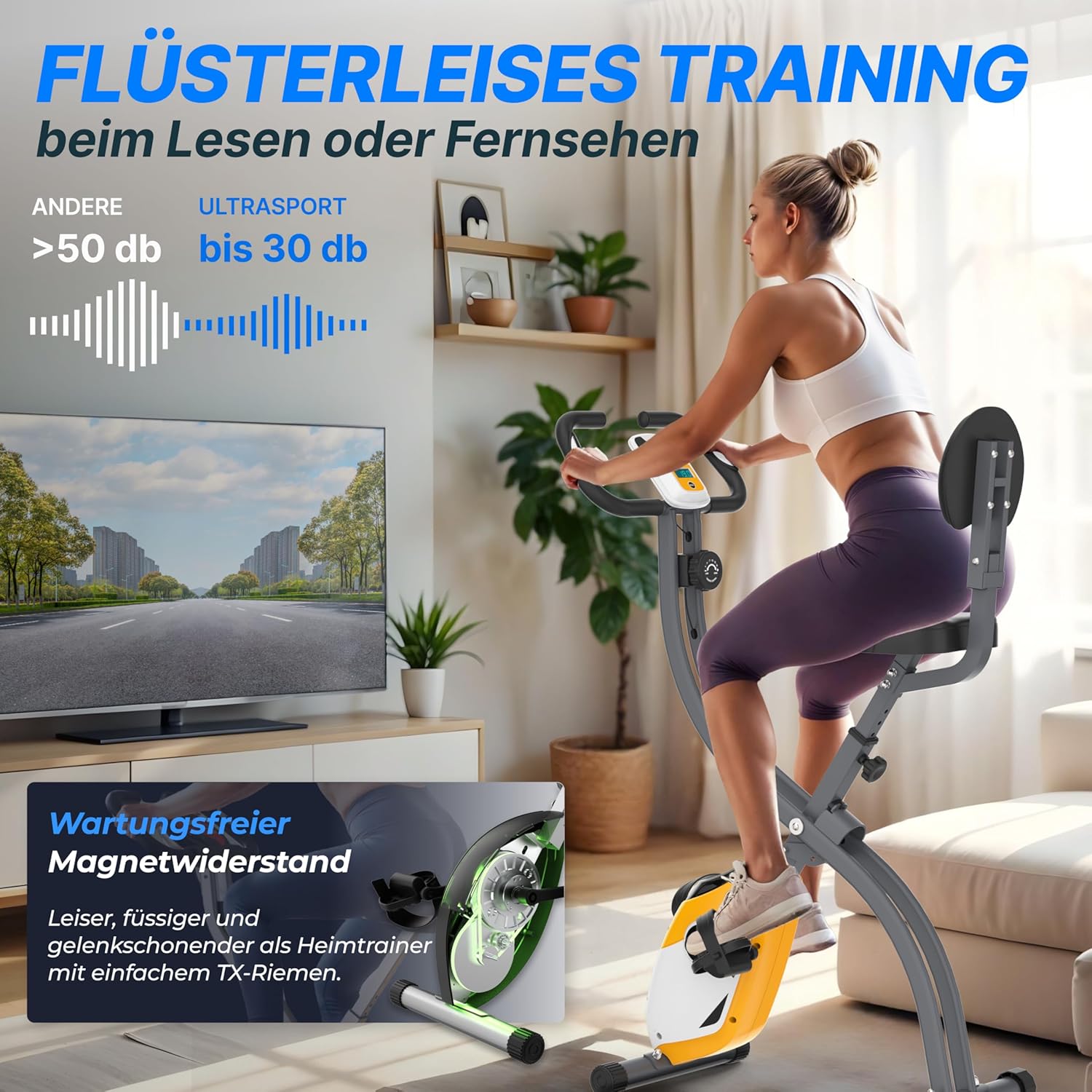 Mit dem Ultrasport F-Bike 150/200, Exercise Bike, 8 Resistance Levels, Tablet Holder, Hand Pulse Sensors, Foldable, Space-Saving, LCD Display, for Athletes and Seniors bekommst du Qualität, Komfort und Stil – perfekt für deine nächste Tour.