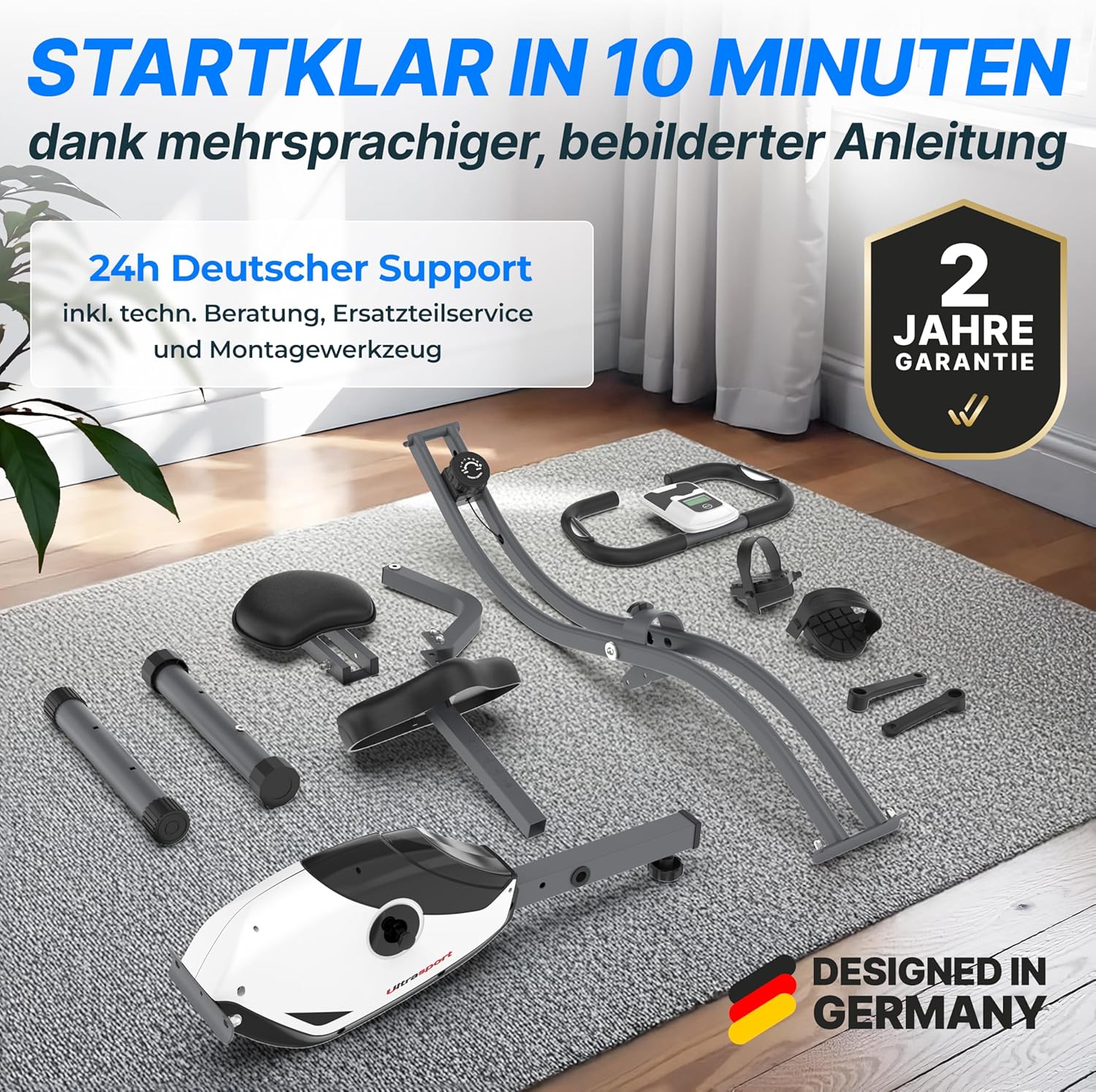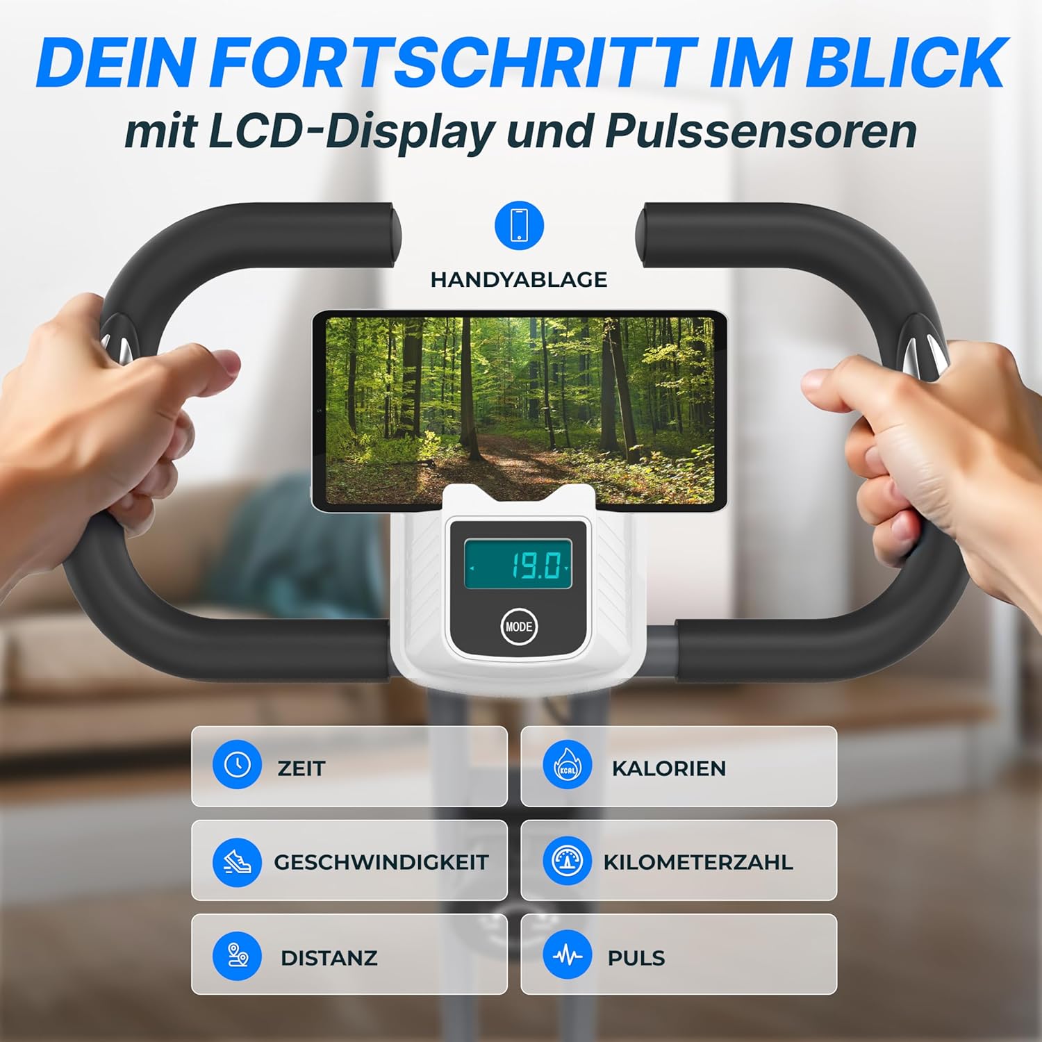 Mit dem Ultrasport F-Bike 150/200, Exercise Bike, 8 Resistance Levels, Tablet Holder, Hand Pulse Sensors, Foldable, Space-Saving, LCD Display, for Athletes and Seniors bekommst du Qualität, Komfort und Stil – perfekt für deine nächste Tour.