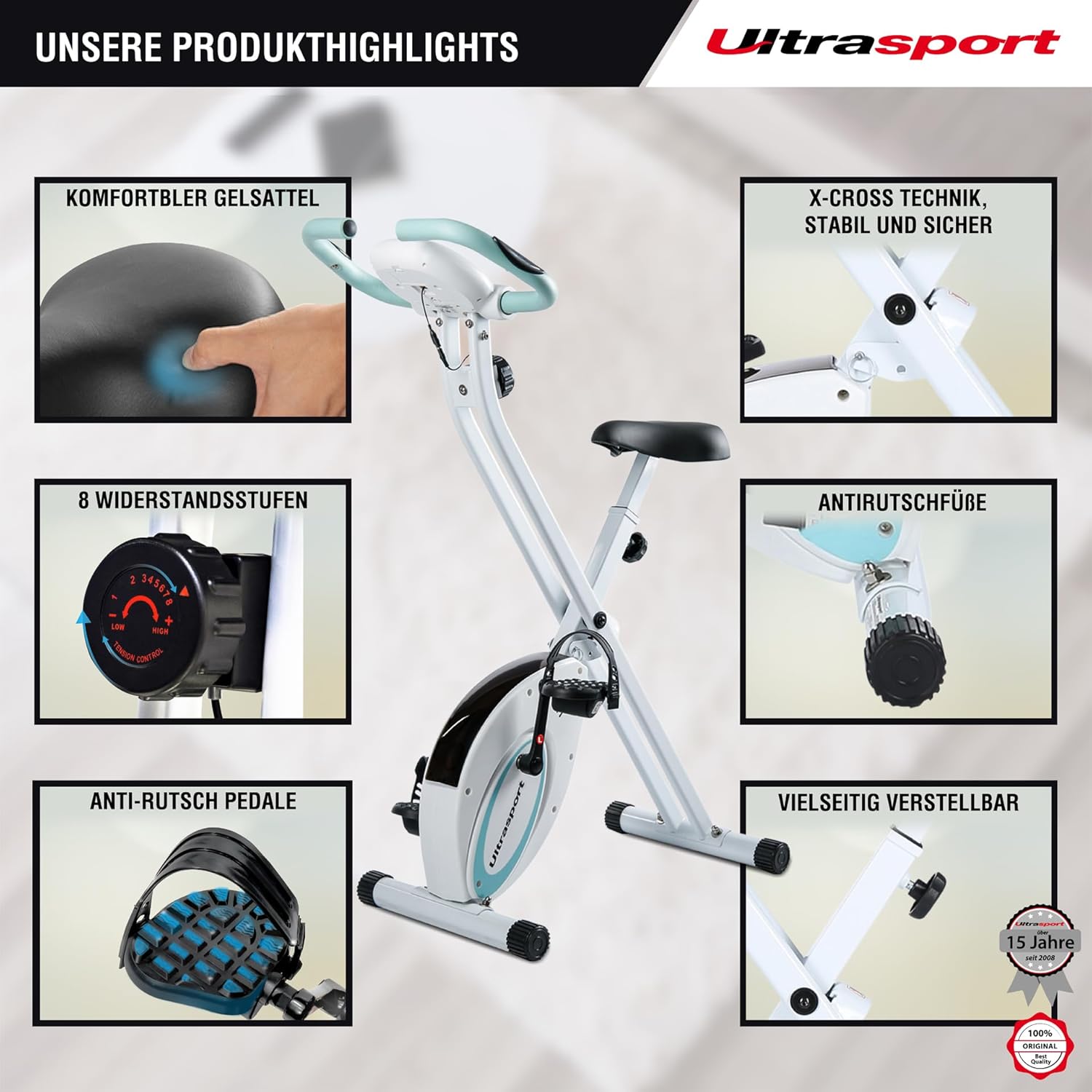 Jetzt entdecken: Ultrasport Folding Exercise Bike, Home Trainer, Bicycle, Extra Quiet up to 130 kg with Comfort Saddle, Ergometer, Exercise Bike, Fitness Bike, Indoor Bike, Trimming Bike