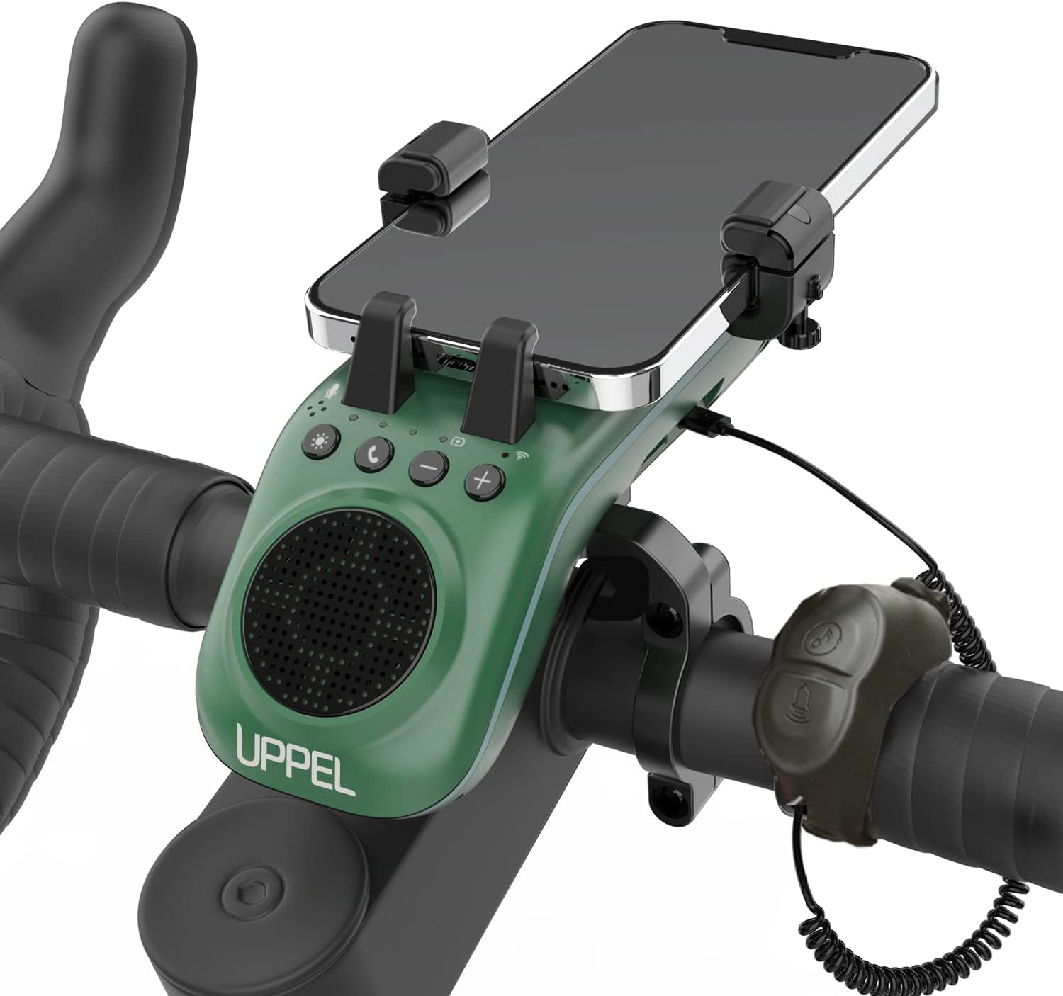 Jetzt entdecken: UPPEL Bicycle Bluetooth Speaker 10 in 1 Multifunctional Mobile Phone Holder Bicycle Power Bank Bell Microphone TF-SD-AUX Mode – Extreme and Leisure Cycling with Bicycle and Mountain Bike Green