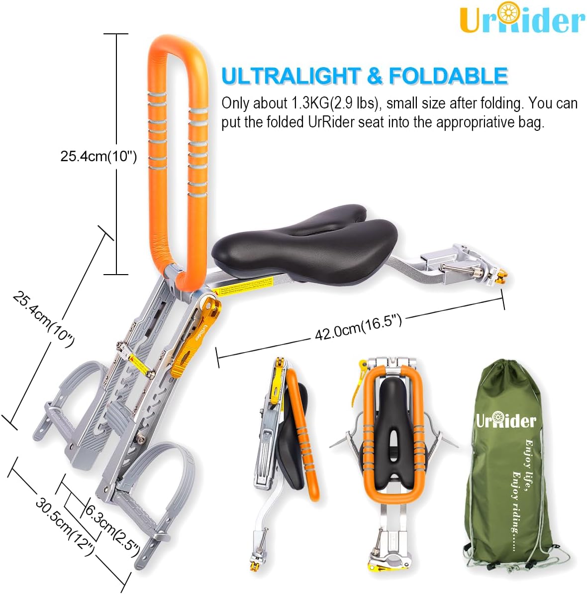 Top-Angebot: UrRider Children’s Bicycle Seat for Mountain Bikes, City Bikes, Folding Bikes, Children’s Bicycle Seat Front, Foldable, Ultralight Portable, Toolless, Quick Release, Upgrade, for Children from 2 to 6
