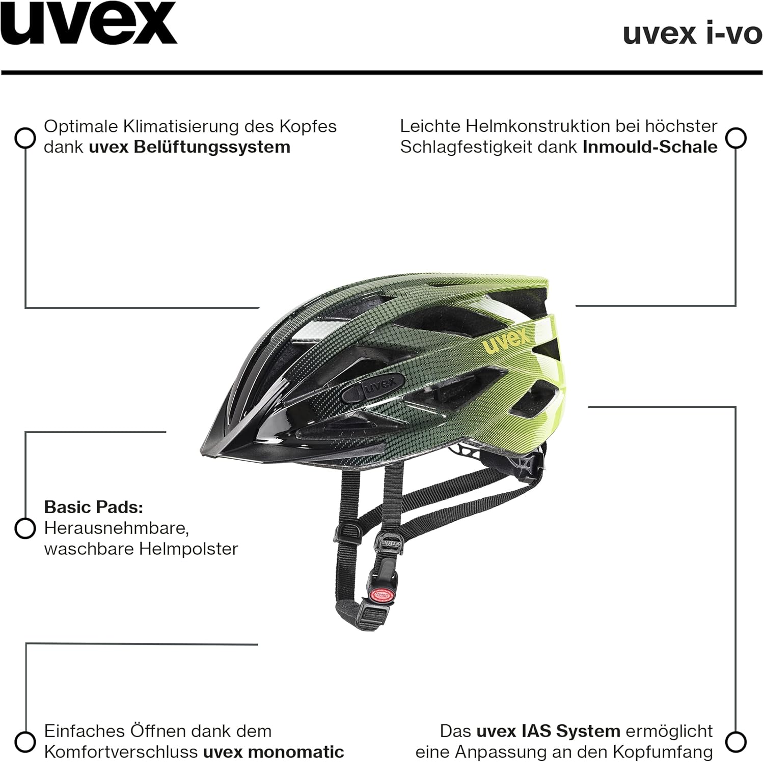 Mit dem uvex i-vo – Leichter Allround-Helm für Damen und Herren – individuelle Größenanpassung – erweiterbar mit LED-Licht bekommst du Qualität, Komfort und Stil – perfekt für deine nächste Tour.