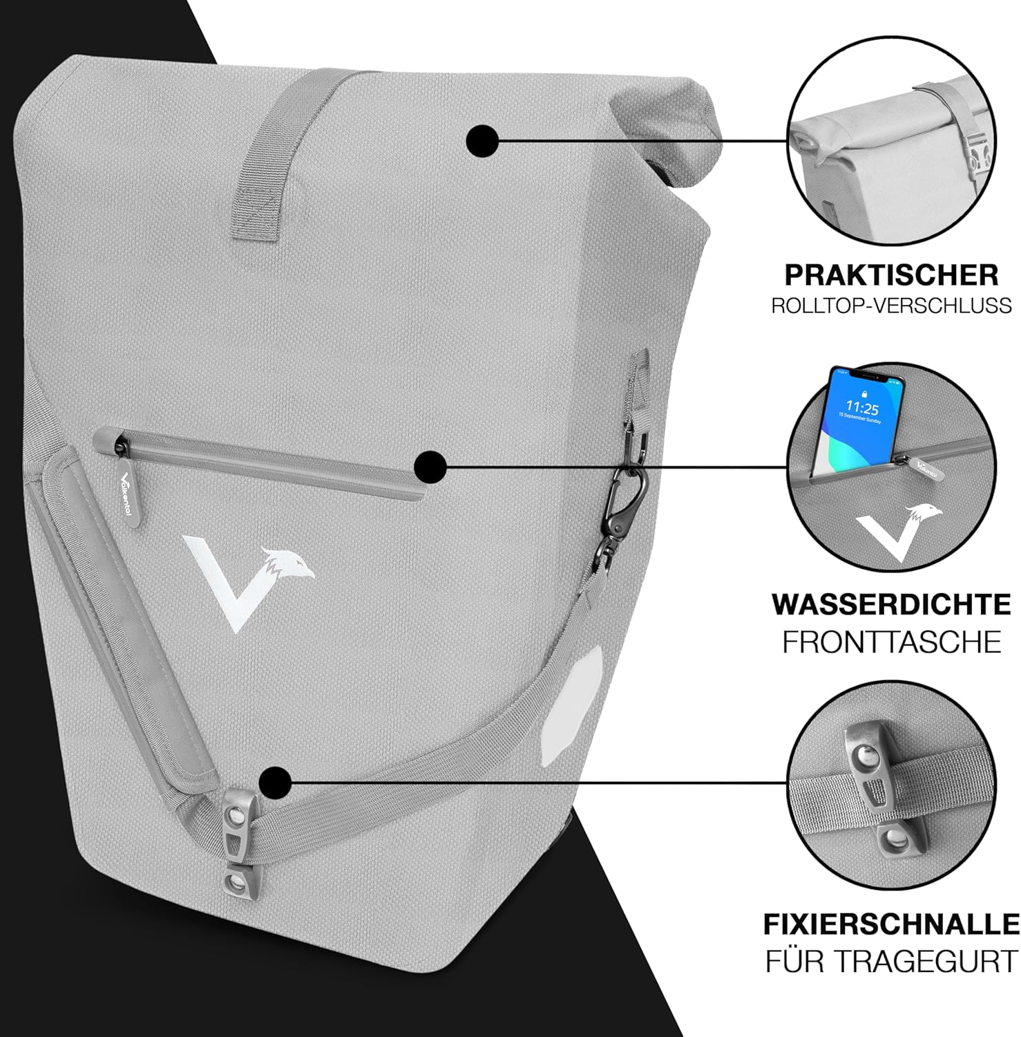 Jetzt entdecken: Valkental® 2-in-1 Reflective Pannier Rack Bag [28L] Lockable Attachment [PVC Free] Bicycle Bag for Pannier Rack with Large Reflectors – Includes Carry Strap and Inner Compartments – Tested Quality