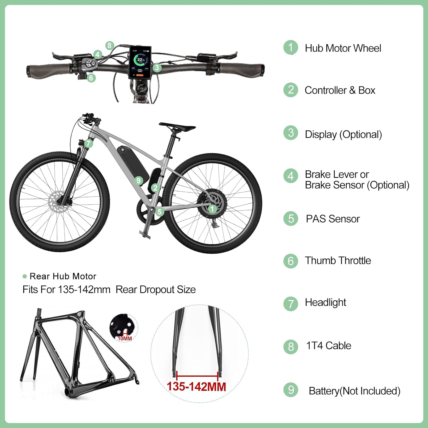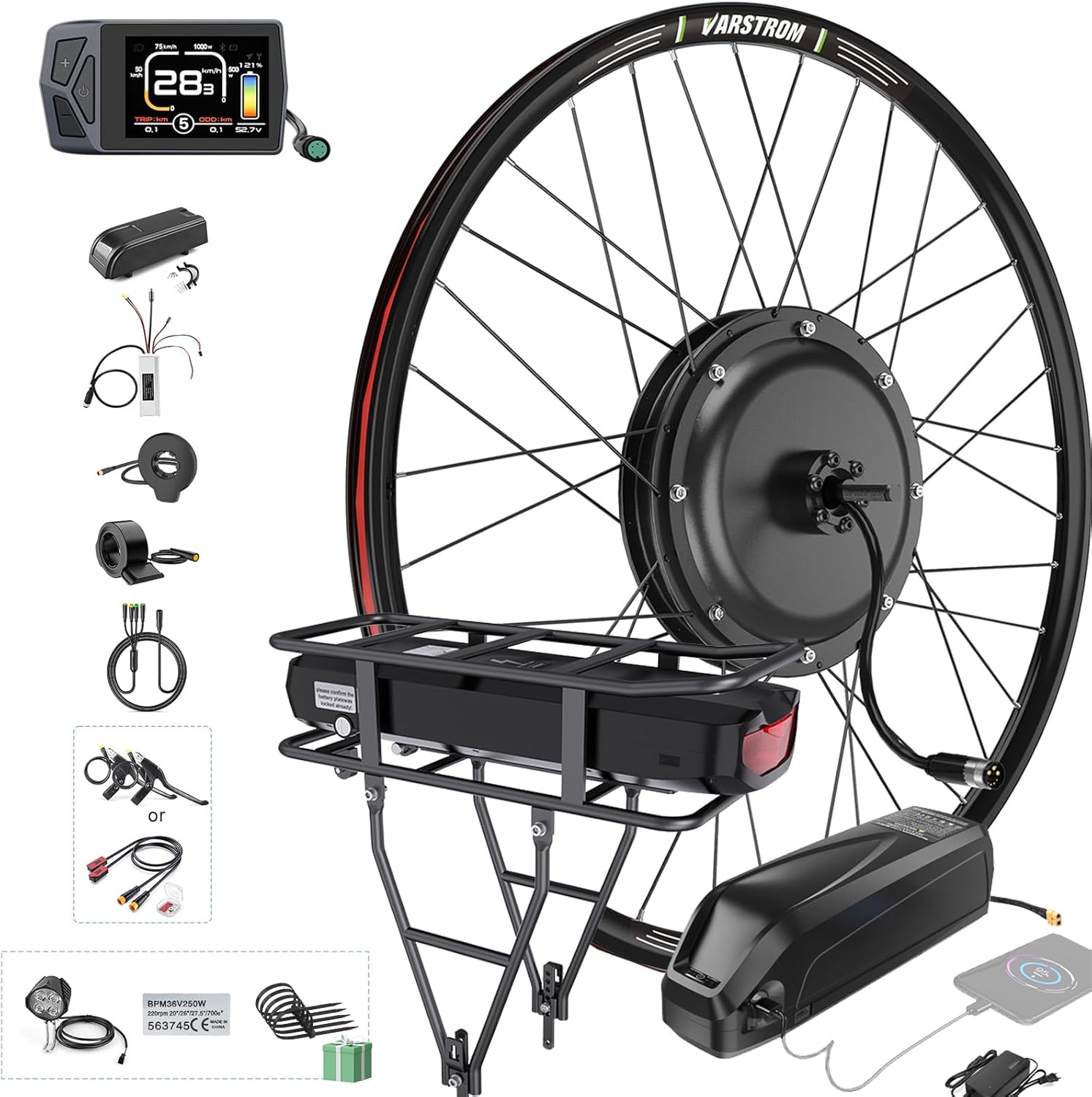 Top-Angebot: Varstrom Ebike Conversion Kit 48 V 1000 W Rear Wheel Motor with Optional Battery and Display Electric Bicycle Conversion Kit for 26 Inch 27.5 Inch 28 Inch 29 Inch 700C for Rear Wheels
