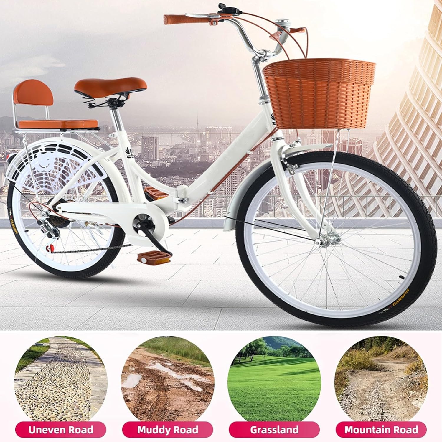 Mit dem VHVYWY Folding Bike for Adults 24 Inch Road Bike Folding Bike Adjustable Quick Folding System 7 Brakes Bicycle + Rear Light + Basket + Bell for Women White bekommst du Qualität, Komfort und Stil – perfekt für deine nächste Tour.