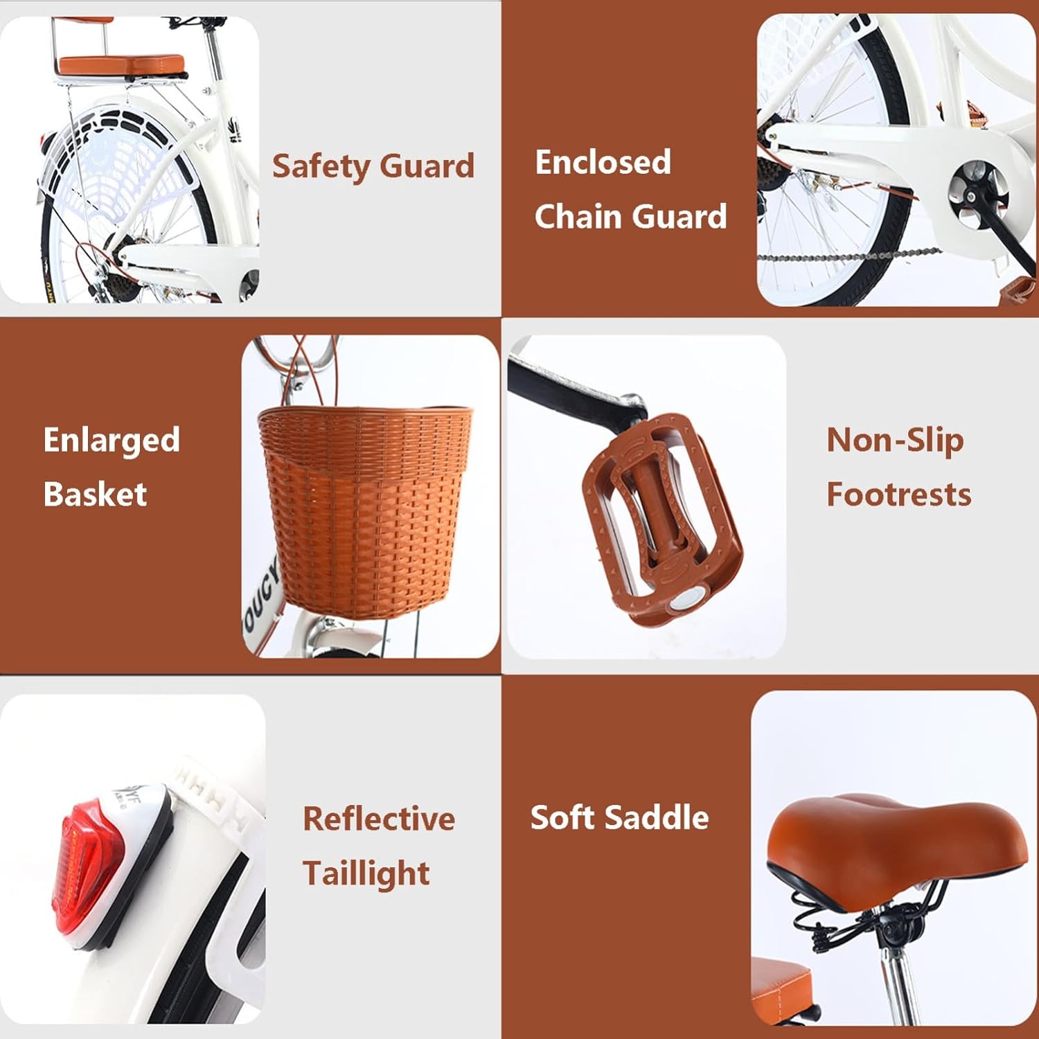 Mit dem VHVYWY Folding Bike for Adults 24 Inch Road Bike Folding Bike Adjustable Quick Folding System 7 Brakes Bicycle + Rear Light + Basket + Bell for Women White bekommst du Qualität, Komfort und Stil – perfekt für deine nächste Tour.