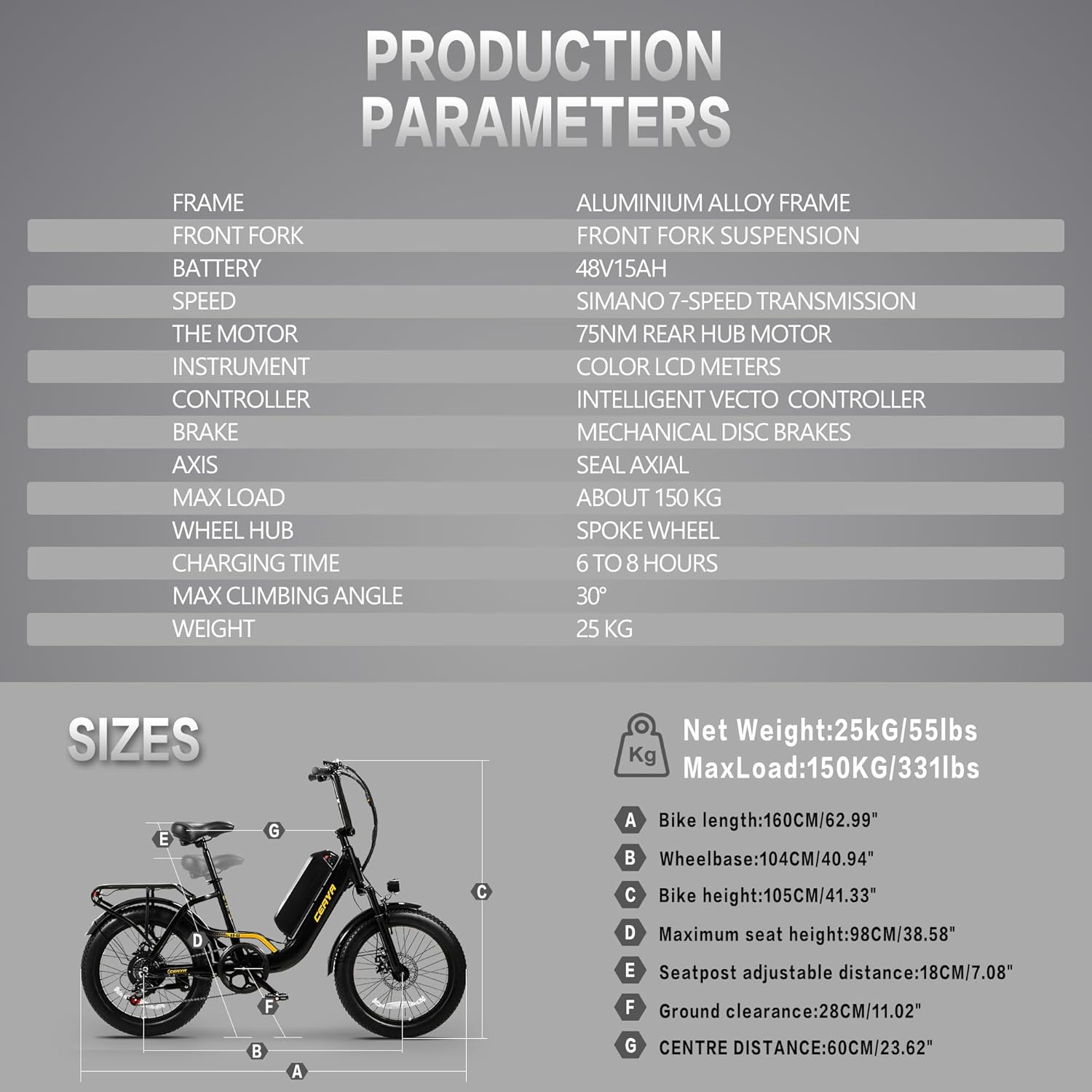 Mit dem VOZCVOX E Bike Men Women 20 Inch Ebike Electric Bicycle for Adults Fat E-Bike with 48 V 15 Ah Lithium Battery, 7 Speed All-Terrain Ebikes 25 km/h bekommst du Qualität, Komfort und Stil – perfekt für deine nächste Tour.