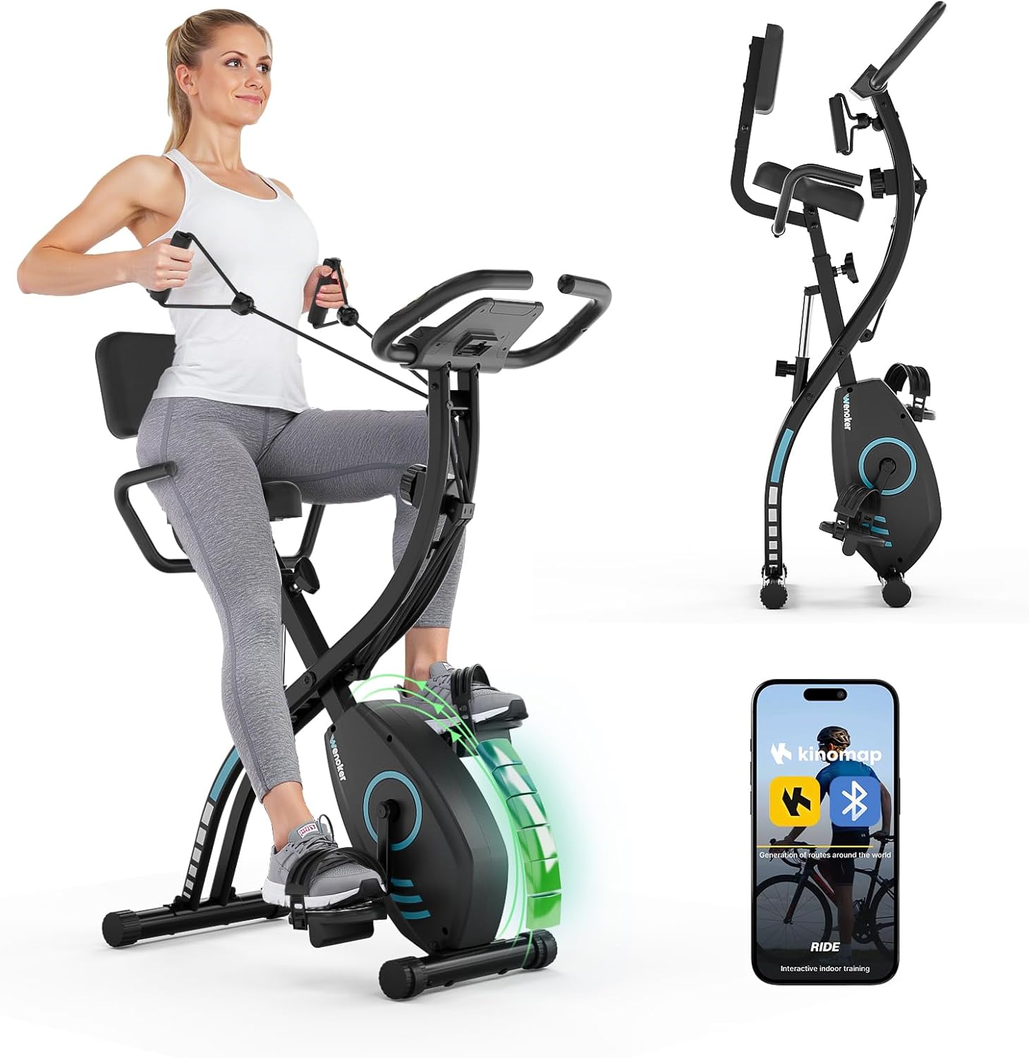 Top-Angebot: Wenoker Ergometer Exercise Bike Foldable Exercise Bike 16 Magnetic Resistance Levels with App Fitness Indoor Bicycle for Home with LCD Monitor, Hand Pulse Measurement Comfort Saddle