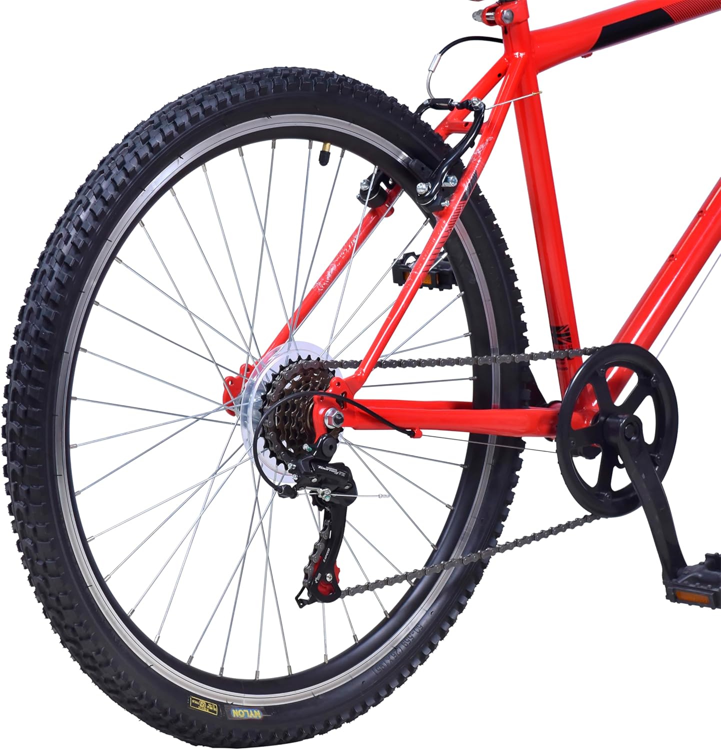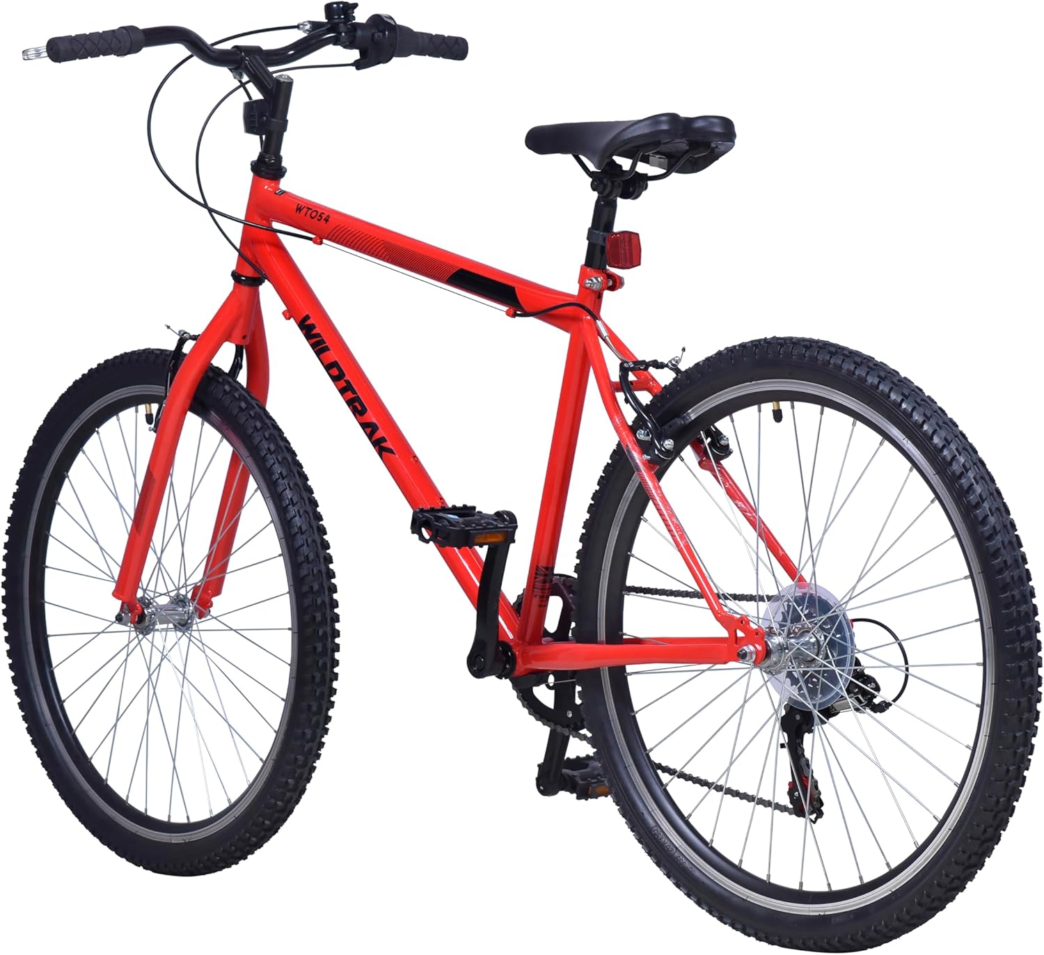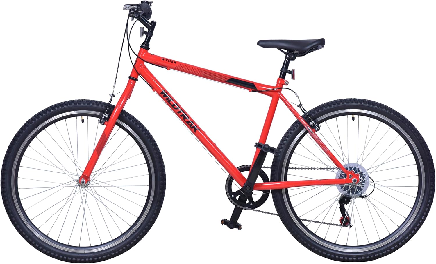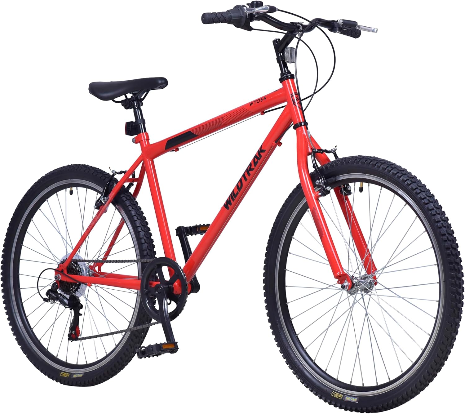 Das Wildtrak – Adult Steel Bicycle, 26 Inch, 18 Speed – Red ist ideal für Sportbegeisterte, die ein zuverlässiges Fahrrad suchen.