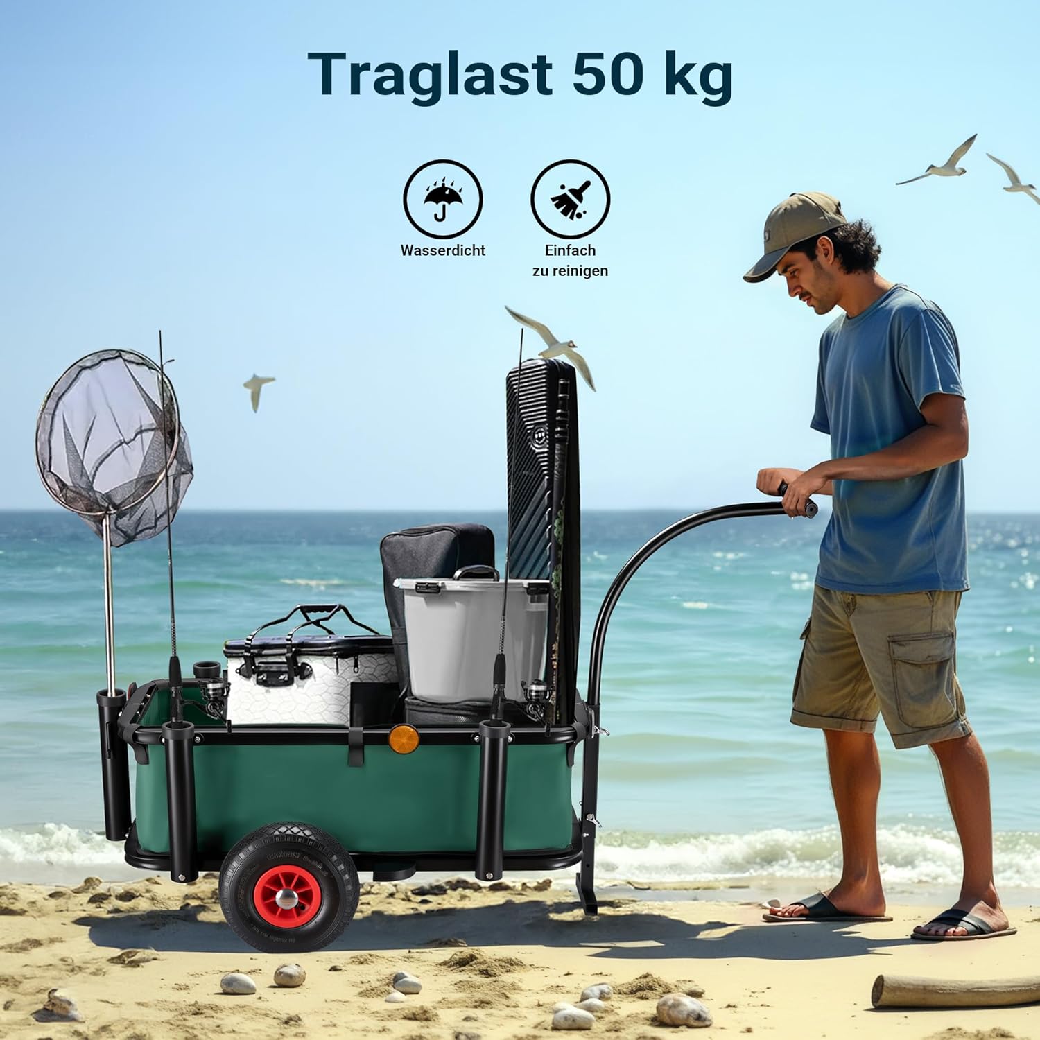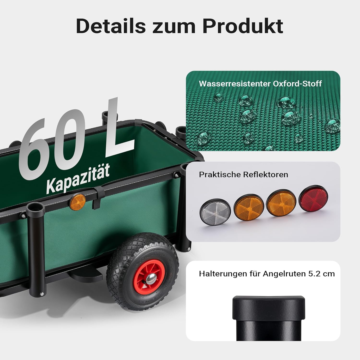 Jetzt entdecken: Wiltec Fishing Trolley with Bag, Fishing Trolley up to 50 kg, Transport Trolley with 60 L Volume, Handcart with Pneumatic Tyres, Steel Transport Trolley, Also as a Cargo Trailer for Bicycle