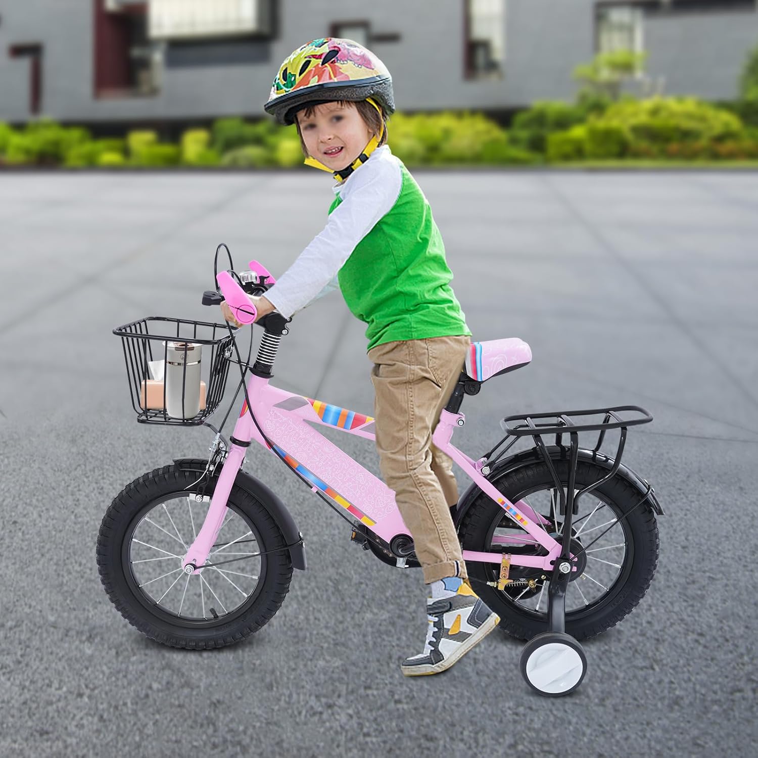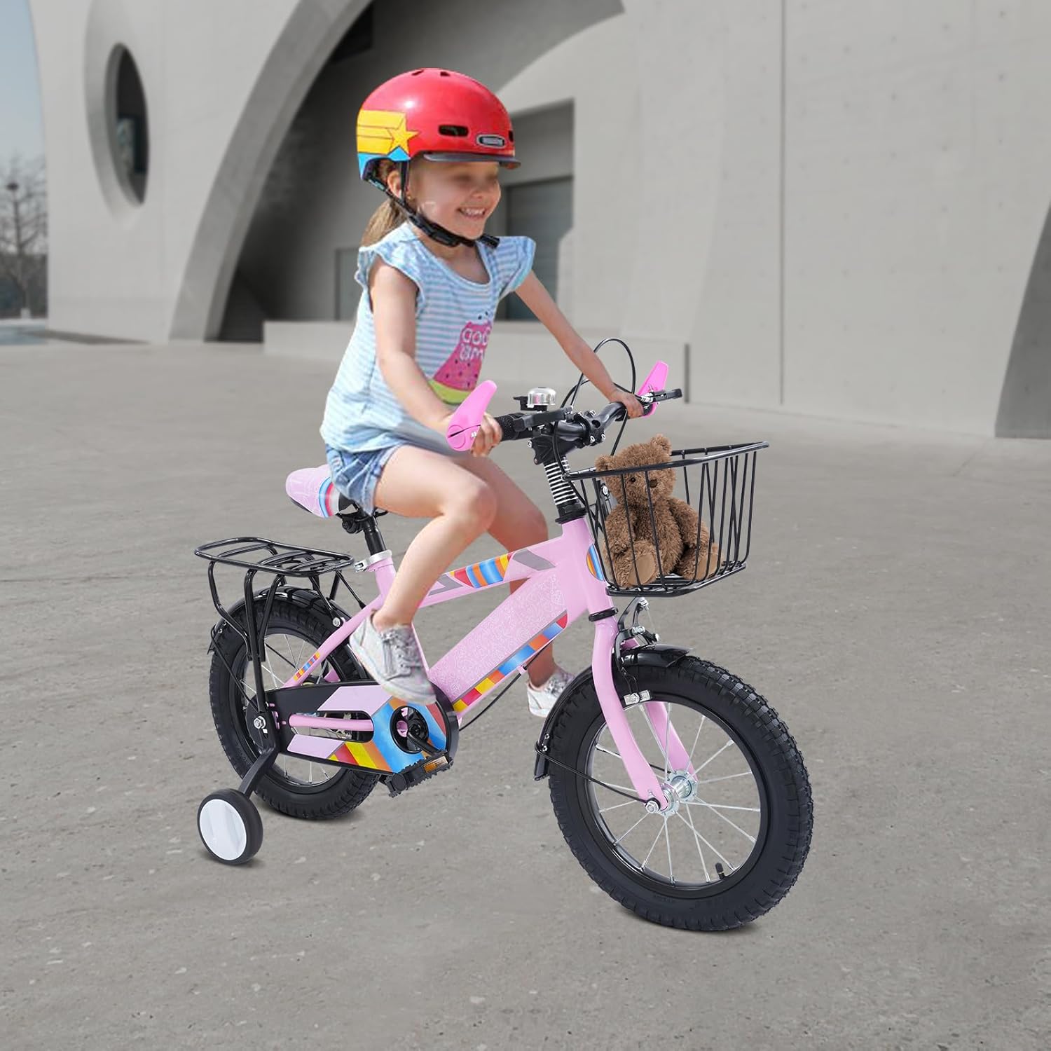 Jetzt entdecken: Wiyuer 14“ Kinderfahrrad Jugend Fahrrad HöHenverstellbar Kinderbike Zwei Sitze Outdoor Bicycles mit Stützräder und Einkaufskorb für Jungen & Mädchen 3-6 Jahre bis 50kg