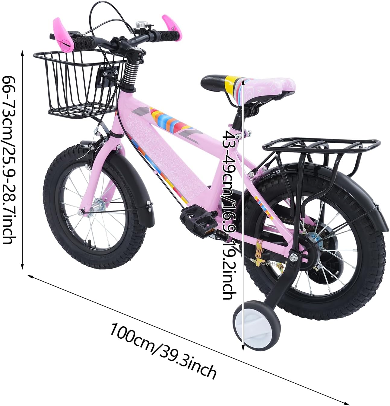 Top-Angebot: Wiyuer 14“ Kinderfahrrad Jugend Fahrrad HöHenverstellbar Kinderbike Zwei Sitze Outdoor Bicycles mit Stützräder und Einkaufskorb für Jungen & Mädchen 3-6 Jahre bis 50kg