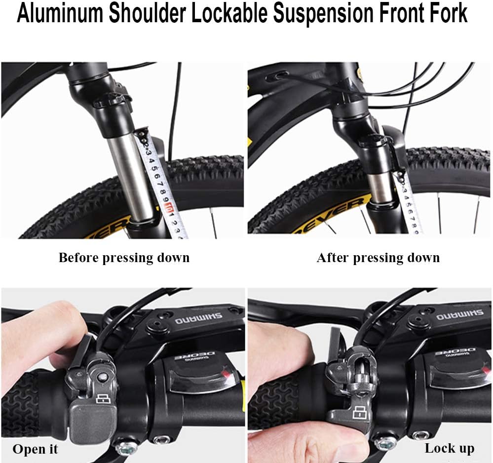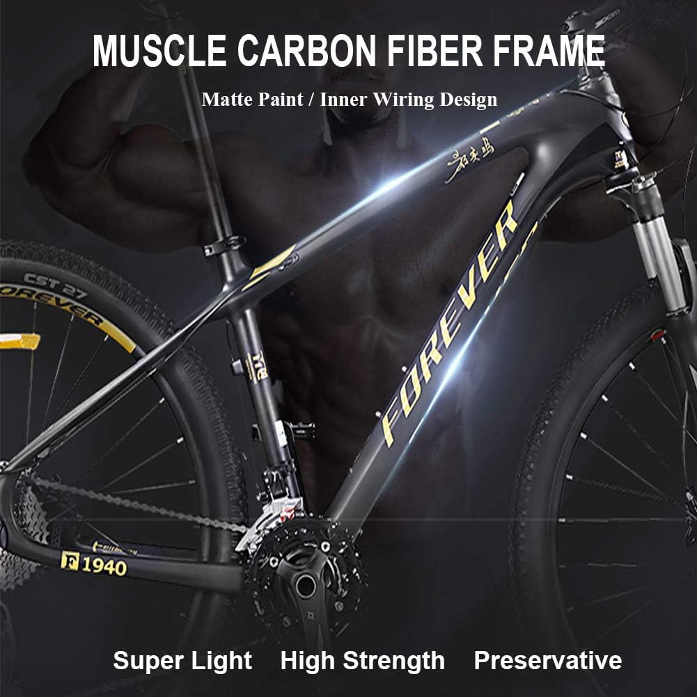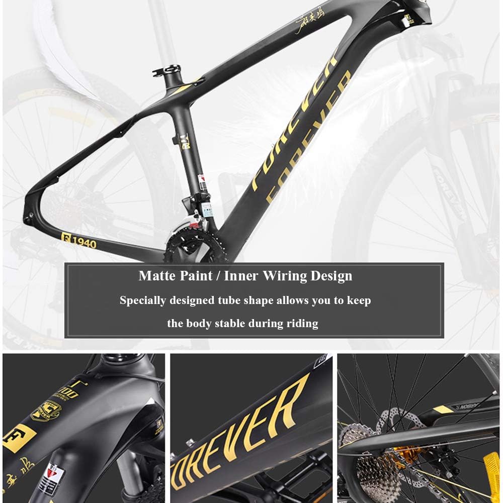 Das Wmmner 27.5 Inch Mountain Bikes Adult Men Hardtail Trail Bike, All Terrain Non-Slip Front Suspension Mountain Bike with Hydraulic Disc Brake, Carbon Fibre Frame, Black Gold, 27 Speed ist ideal für Hobbyradler, die ein zuverlässiges Fahrrad suchen.
