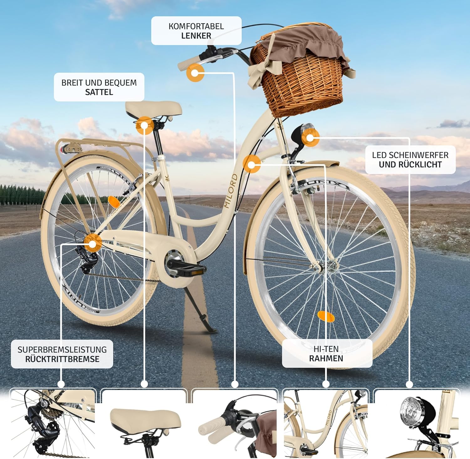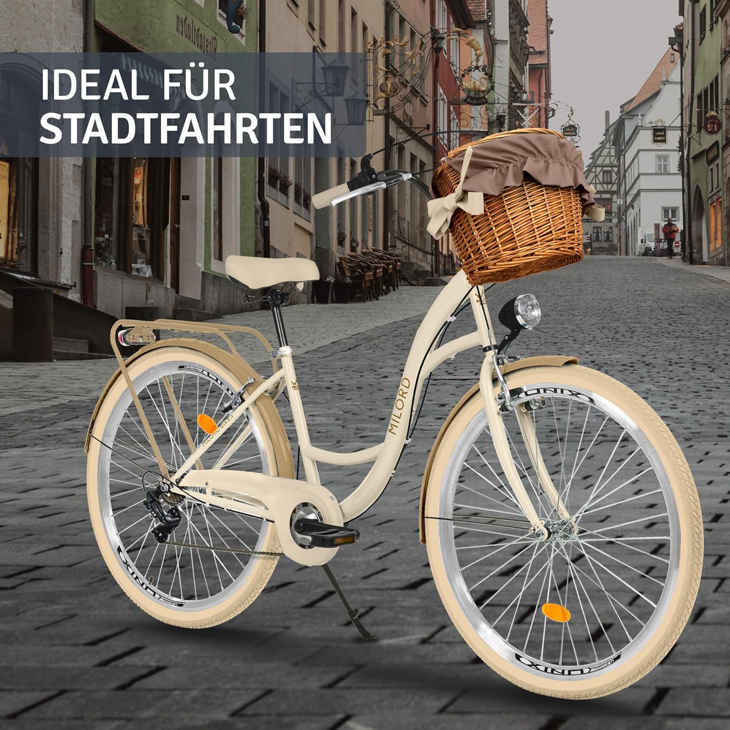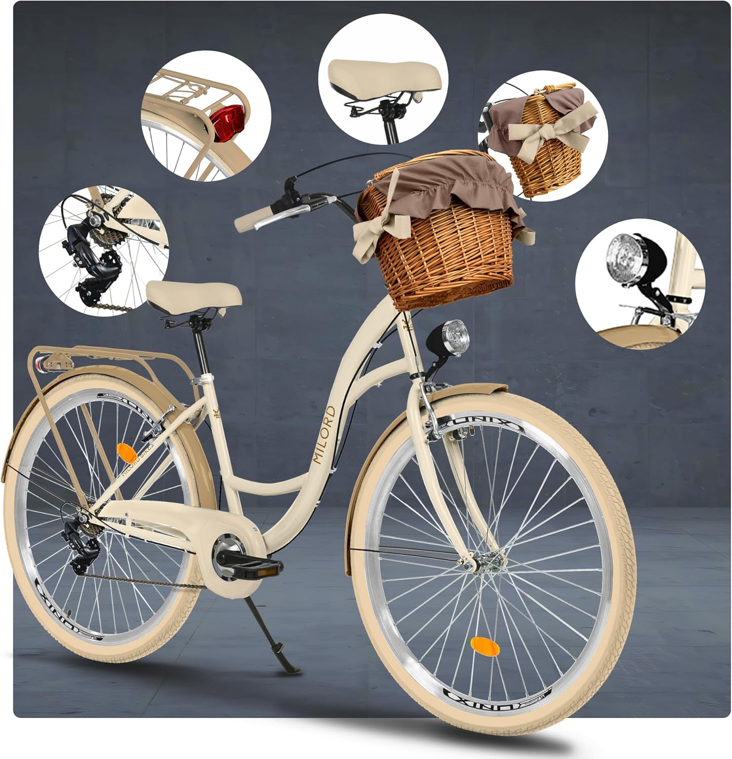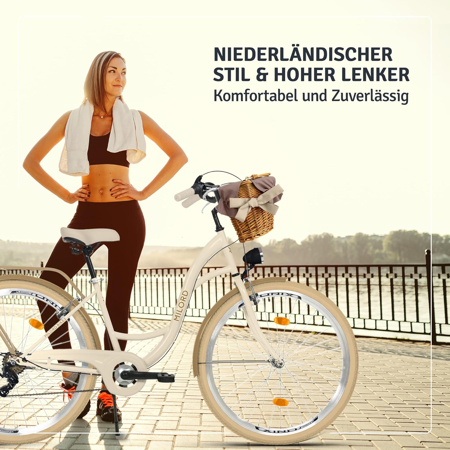 Mit dem Women’s City Bike Comfort with Wicker Basket Dutch Bike Vintage Bicycle 26 / 28 Inch 7 Speed bekommst du Qualität, Komfort und Stil – perfekt für deine nächste Tour.