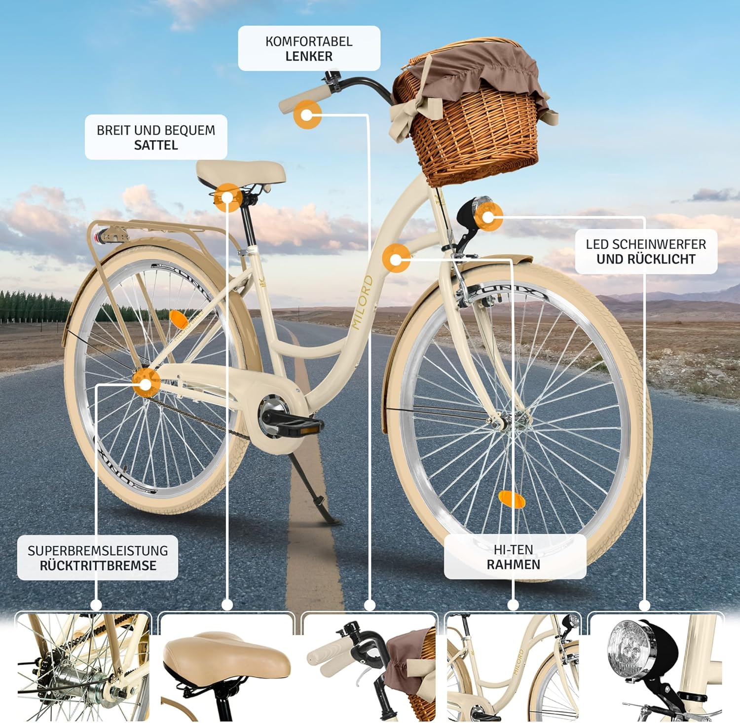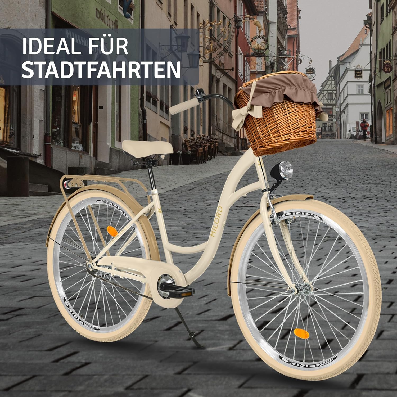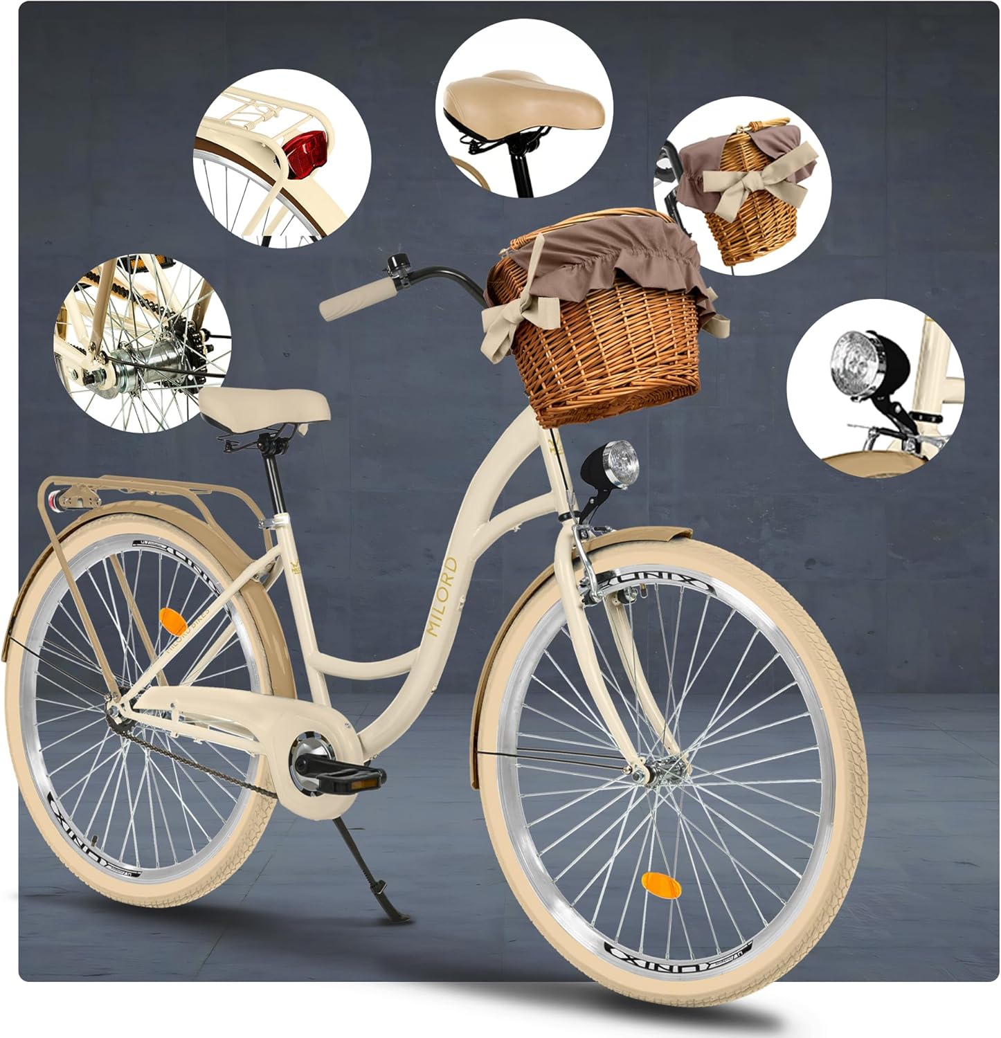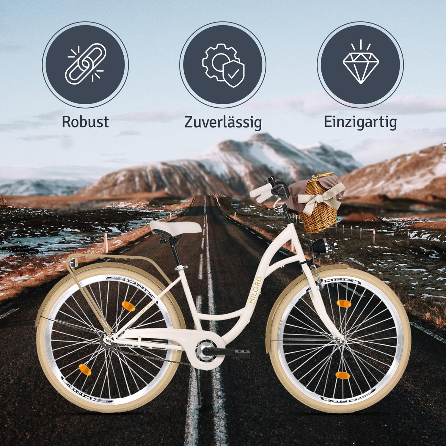 Das Women’s City Bike Comfort with Wicker Basket Vintage Bicycle 26 / 28 Inch 1 Speed ist ideal für Alltagspendler, die ein zuverlässiges Fahrrad suchen.