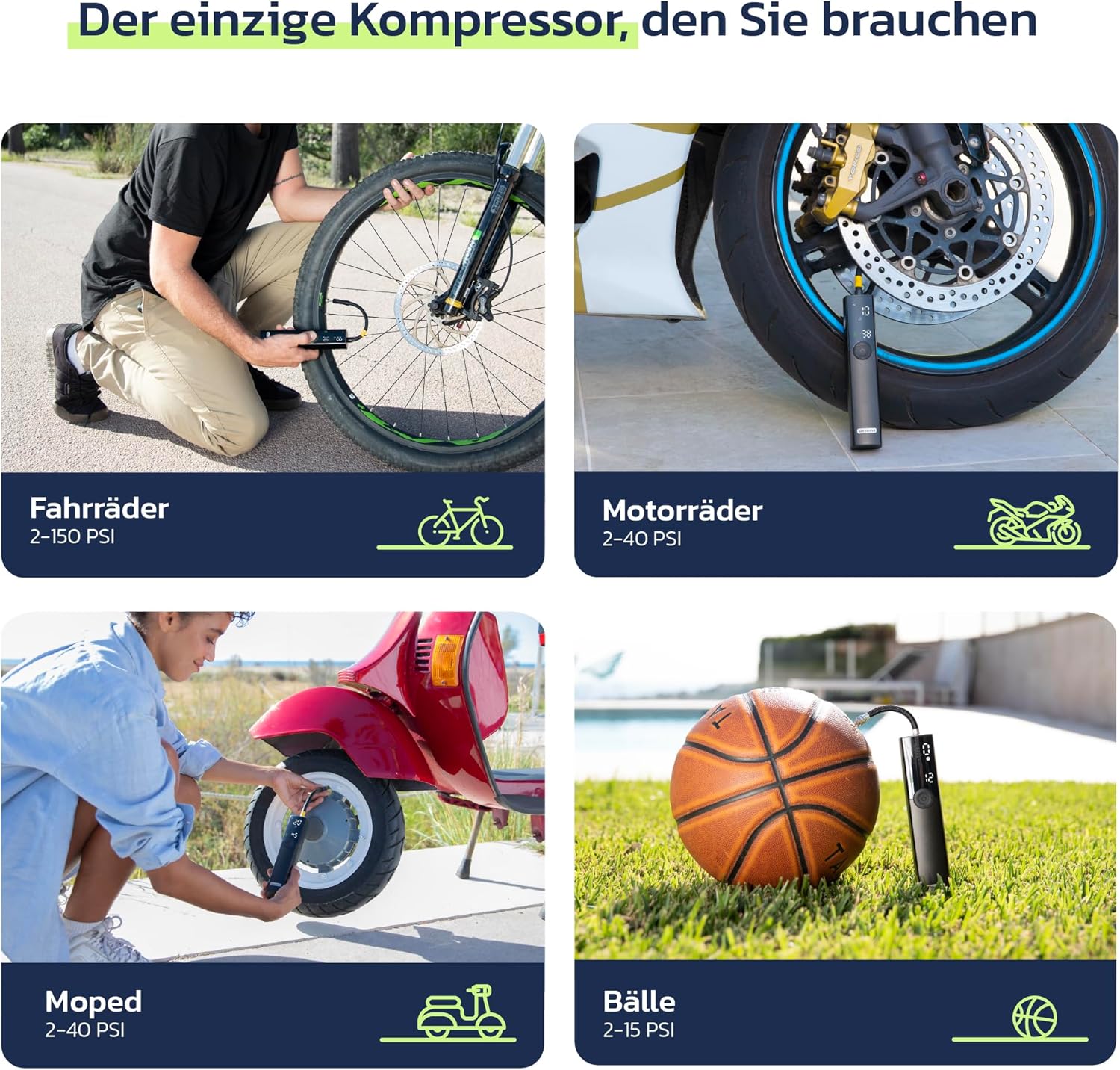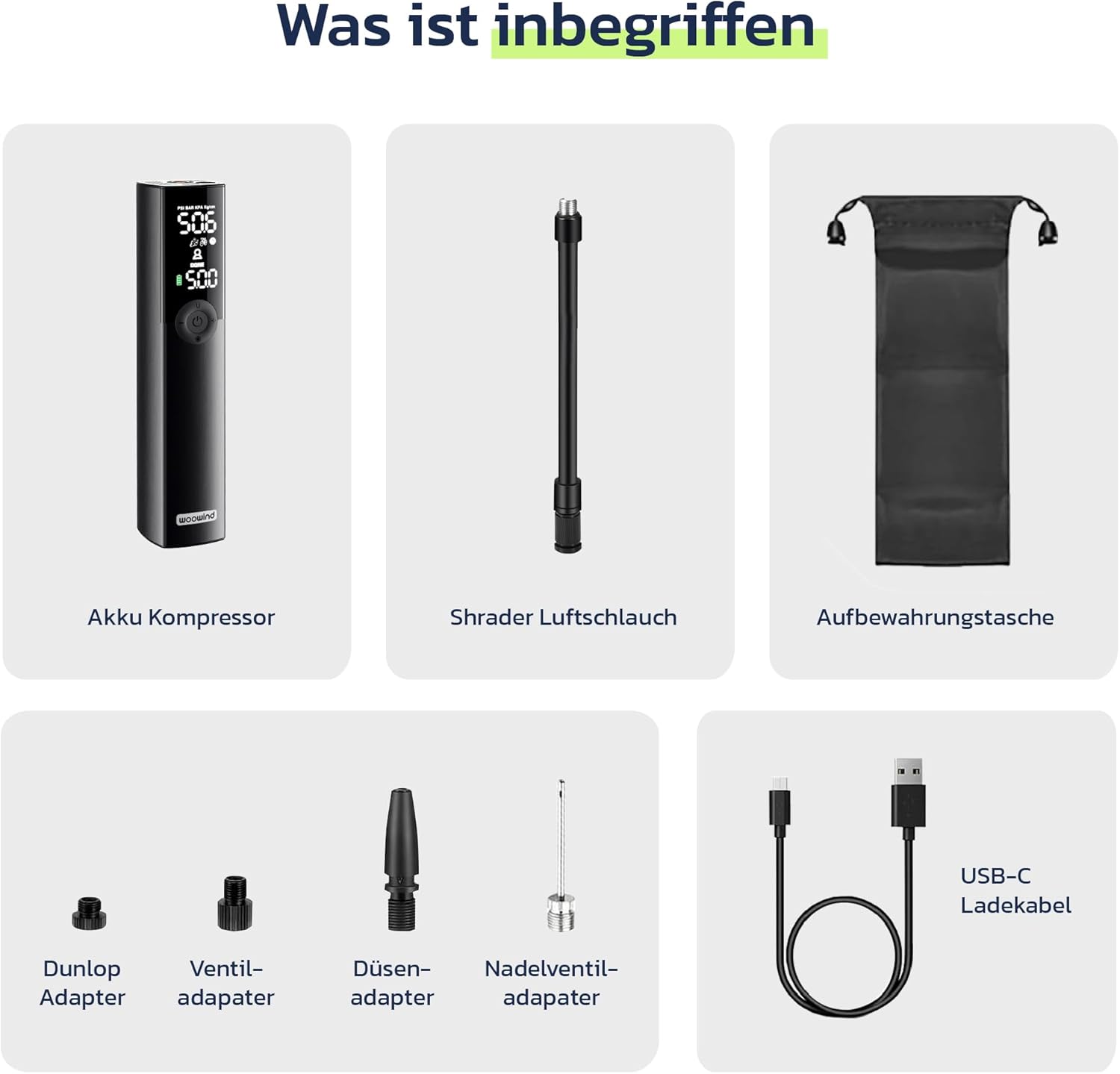 Das Woowind Bicycle Pump BP188 Electric Air Pump 120 150 PSI Battery All Valves Compressor for Car, Bicycle, Motorcycle Electric Pump Metal Housing ist ideal für Sportbegeisterte, die ein zuverlässiges Fahrrad suchen.
