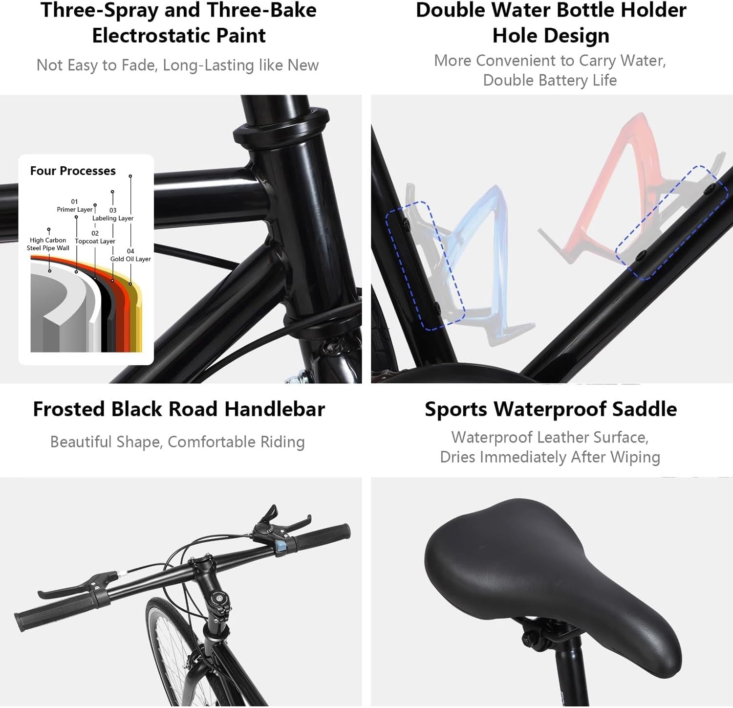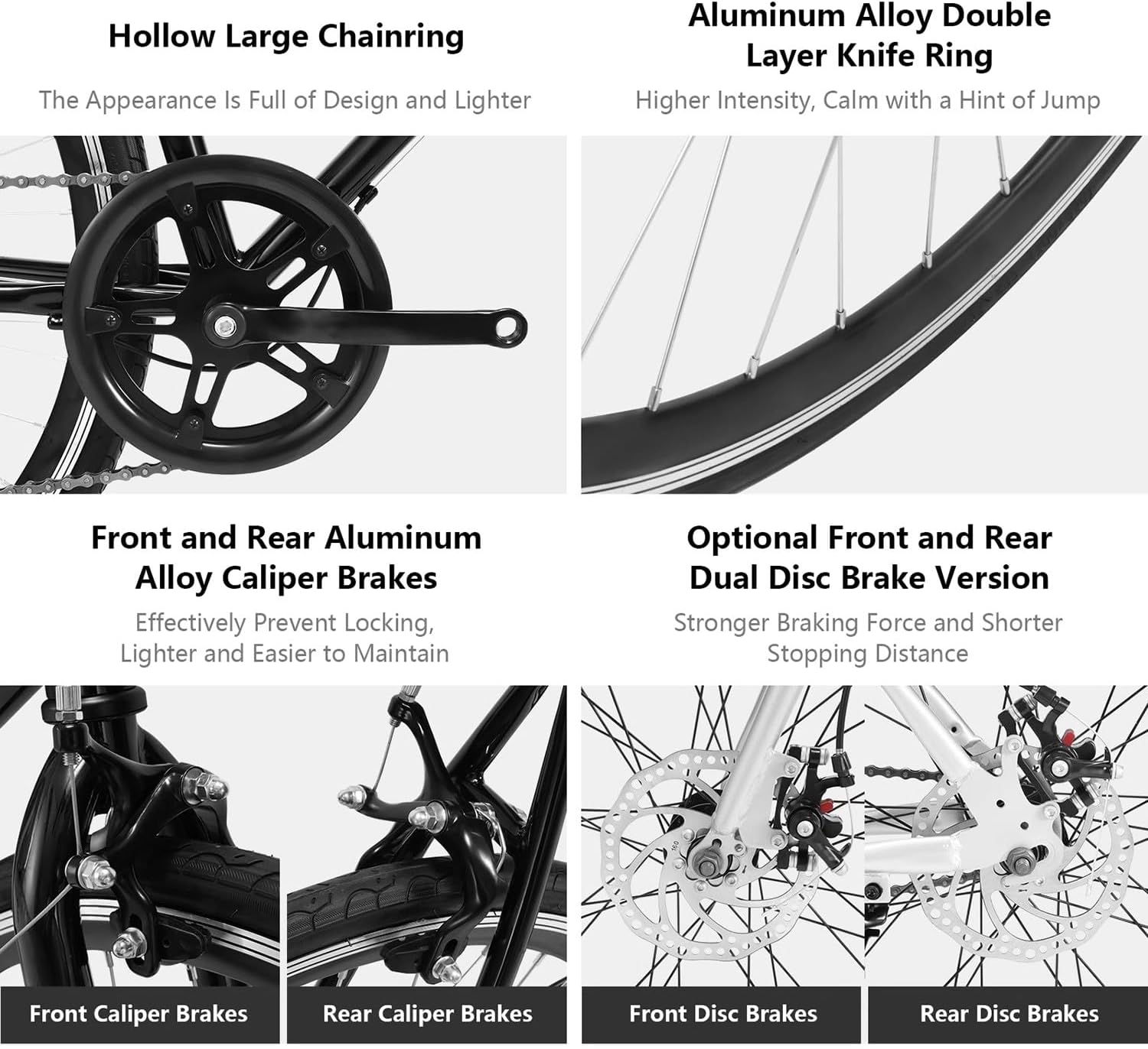 Mit dem WXHJM Singlespeed 700C City City Bicycle Road Bike, Disc Brake, Men Women Bike Urban City Commuter Bicycle Height Adjustable Lightweight Bicycle for Unisex bekommst du Qualität, Komfort und Stil – perfekt für deine nächste Tour.