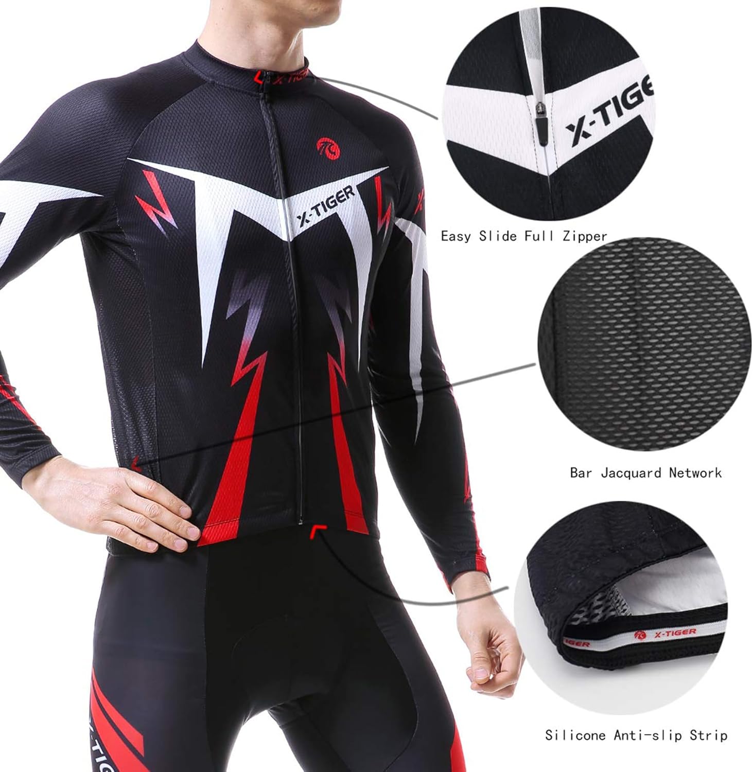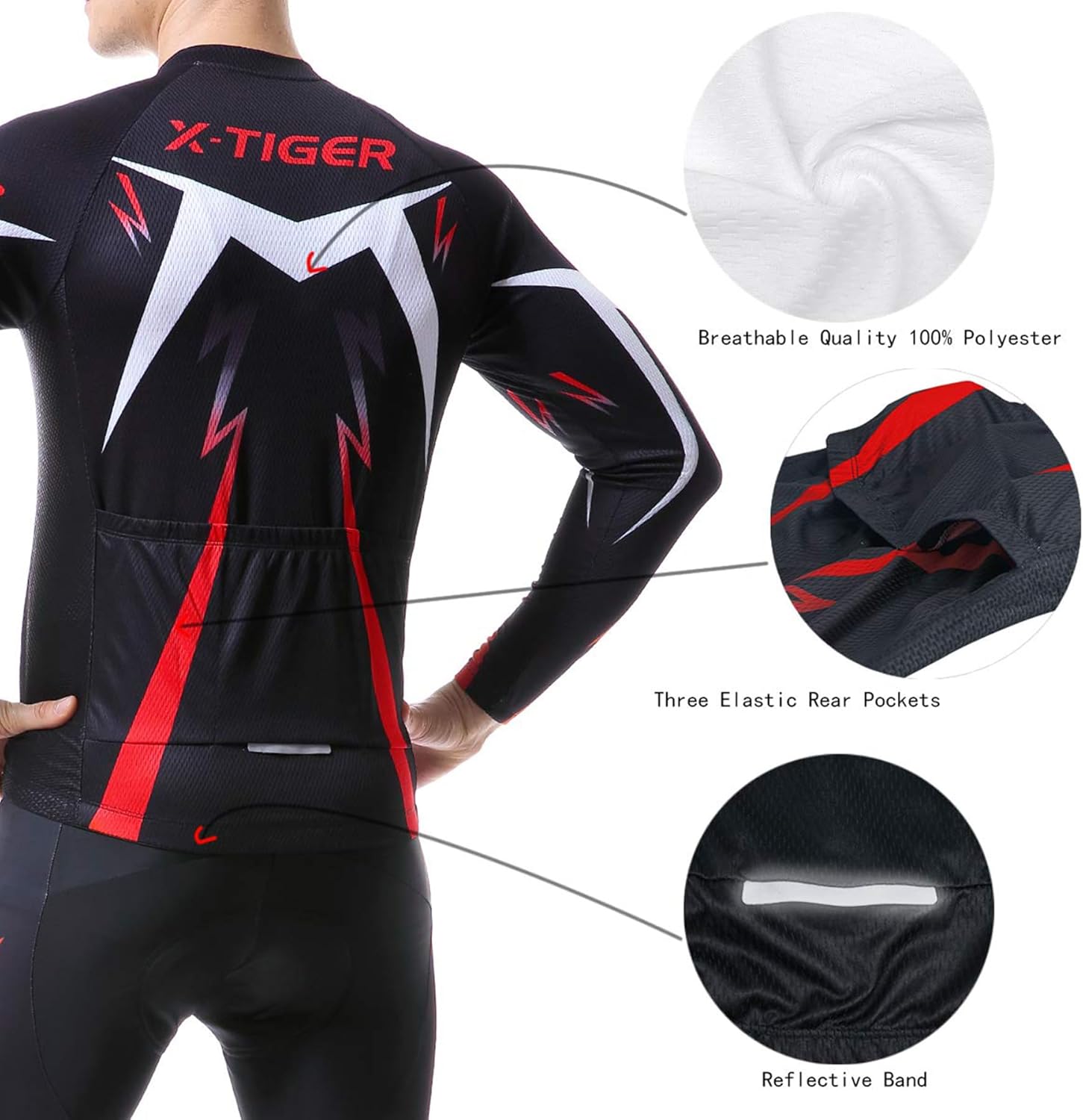 Jetzt entdecken: X-Tiger Men’s Long-Sleeved Cycling Jersey Set, Winter Cycling Suit with 5D Gel-Padded Bib Tights