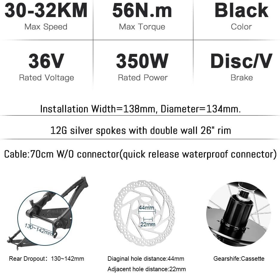 Top-Angebot: YOSE POWER 26 inch/27.5 inch/28 inch Ebike Conversion Kit 36 V 250 W/350 W Rear Motor Electric Bicycle Conversion Kit for Sprocket Cassette with Integrated Controller Hailong 36 V 13 Ah/18 Ah Battery