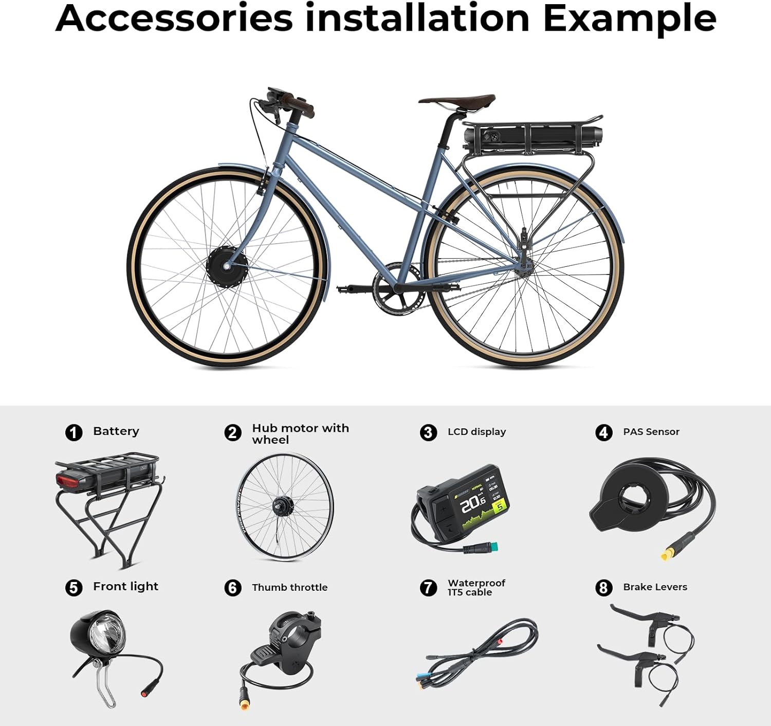 Mit dem YOSE POWER Ebike Kit 36 V 250 W 26/28 Inch Front Motor E-Bike Hub Conversion Kit Integrated Controller with Hailong Plus 36 V 15.6 Ah/18 Ah Battery/36 V 13 Ah Pannier Rack Battery for 28 Inch Disc bekommst du Qualität, Komfort und Stil – perfekt für deine nächste Tour.