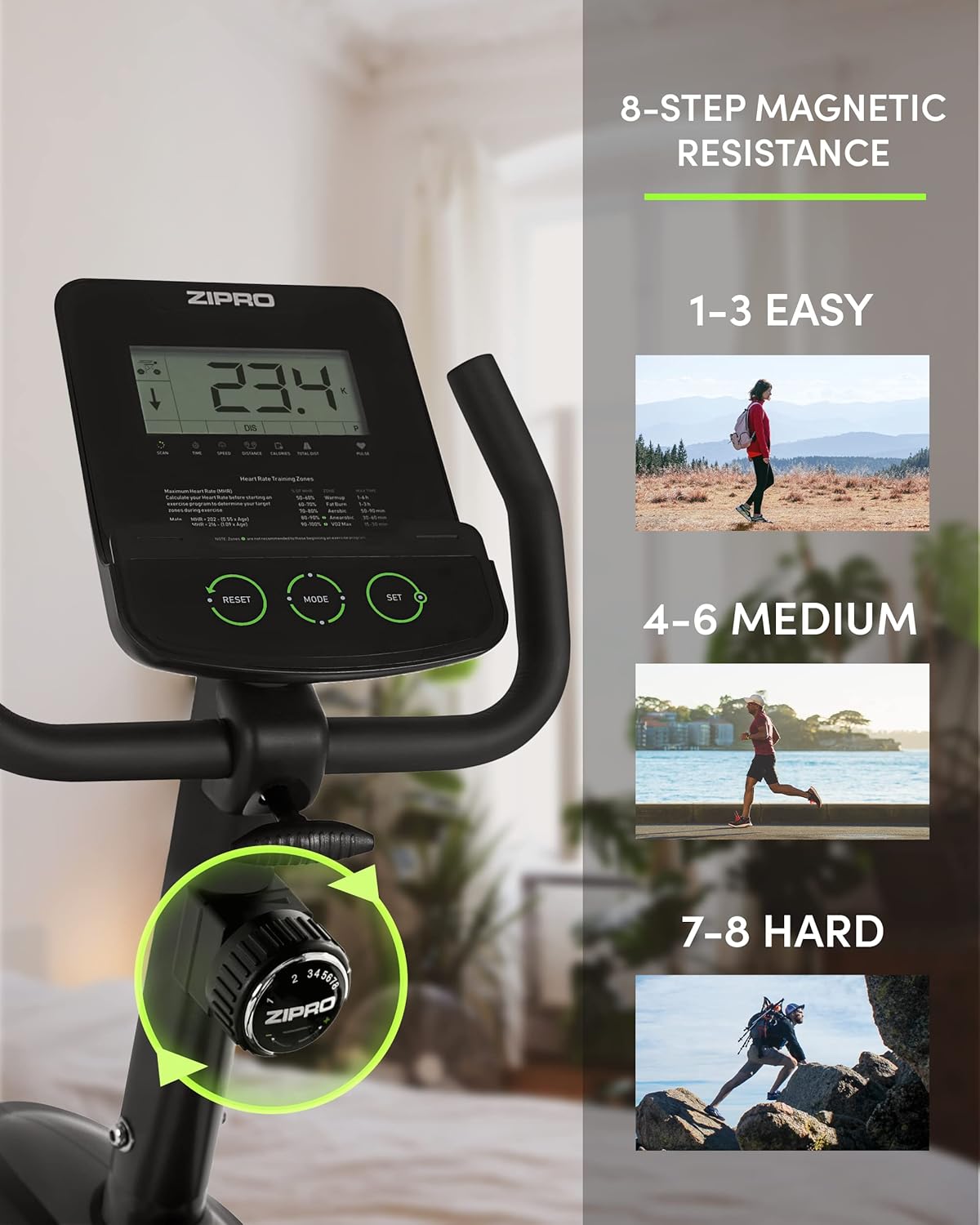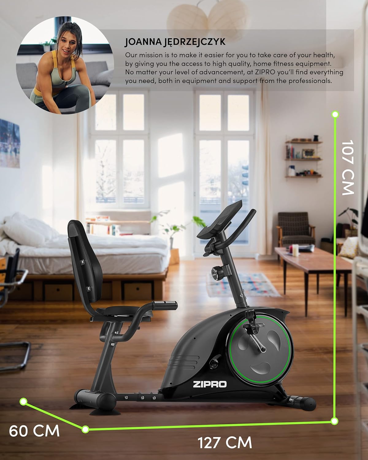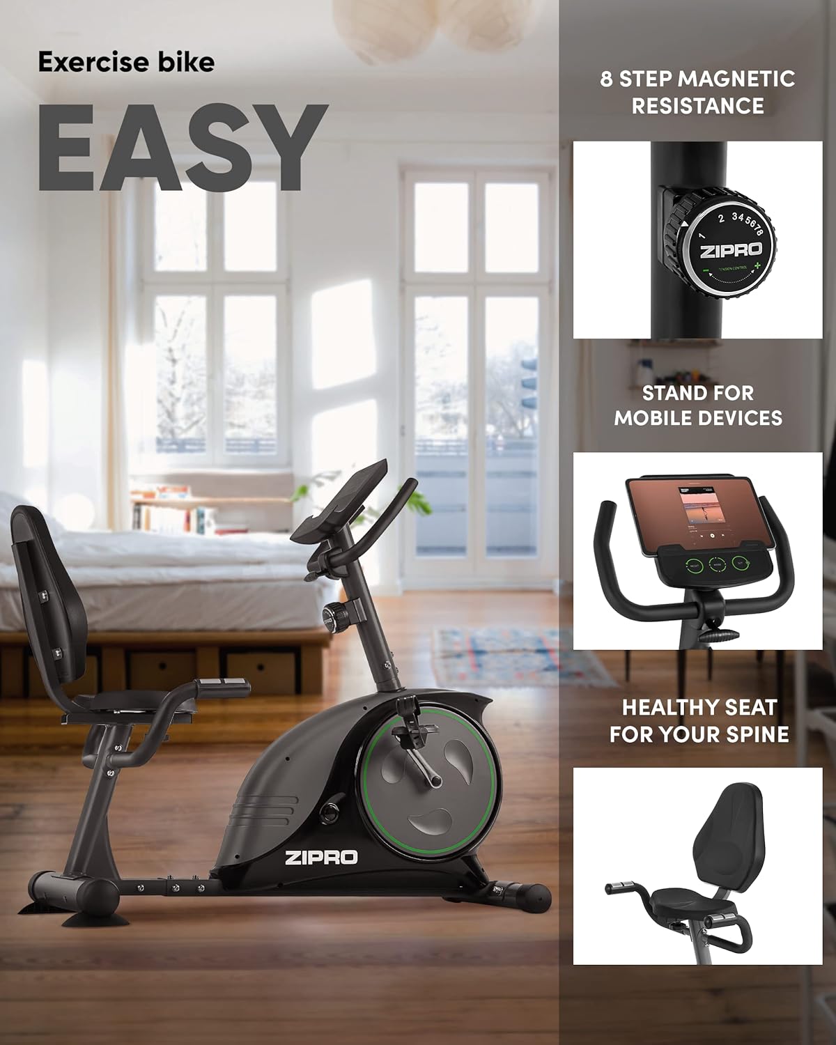 Top-Angebot: Zipro Easy Horizontales Heimtrainer Fahrrad für Zuhause Magnet Fahhrad bis 150 kg Magnete Exercise Bike Fitnessbike 8-stufiges Widerstandssystem Fitness Fahrrad Hometrainer Cardio Fahrrad Computer