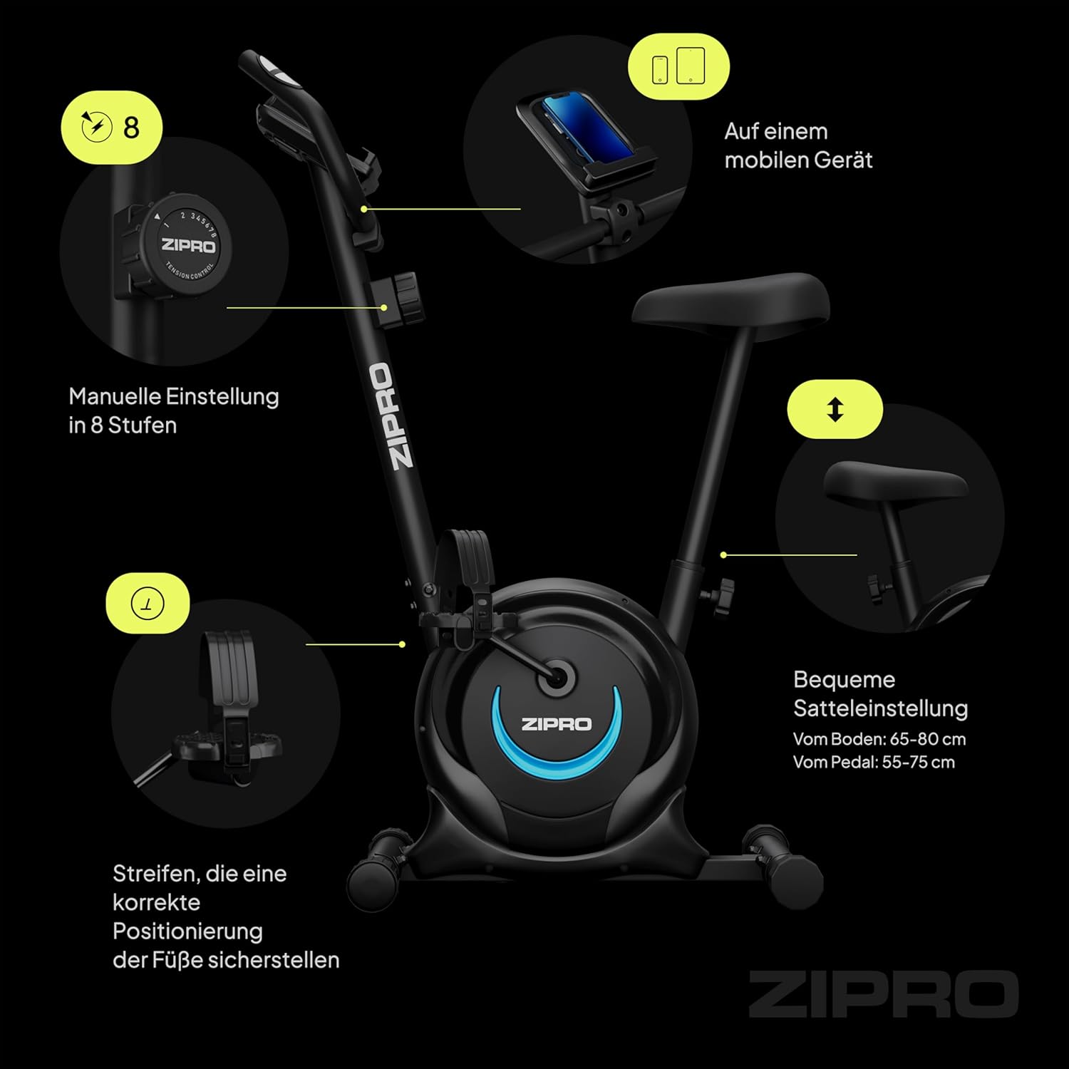 Das ZIPRO Ergometer Heimtrainer Fahrrad mit 8-Stufigem Magnetwiderstand, Smartphone-Halter, LCD-Monitor, Verstellbarem Sattel, Hometrainer Fahrrad für Cardiotraining zu Hause, Leichtes Fitnessbike ist ideal für Hobbyradler, die ein zuverlässiges Fahrrad suchen.