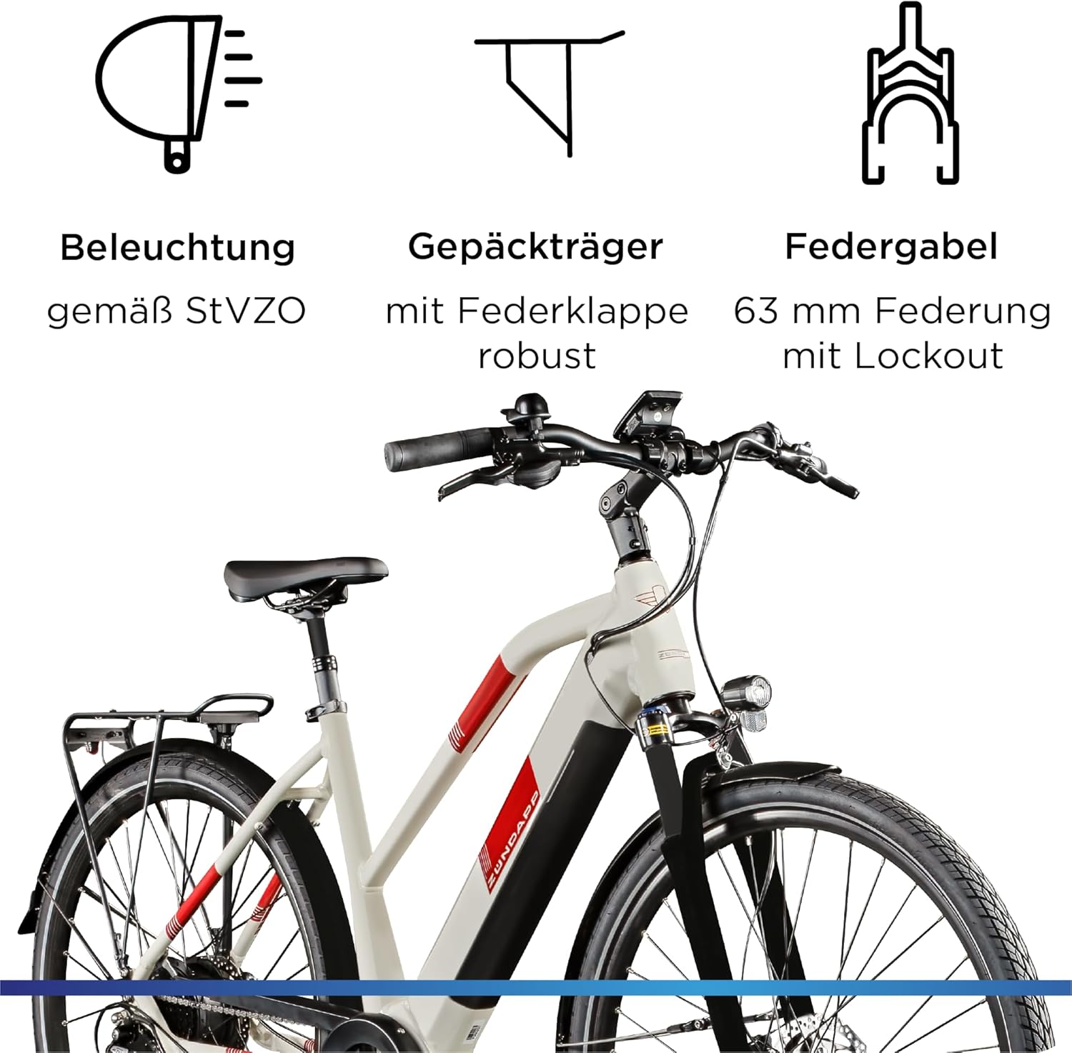 Jetzt entdecken: ZÜNDAPP Ebike Z810 Women’s 28 Inch Trekking Bicycle E Bike 24 Gears 155-170 cm Electric Bicycle E-Bike Electric Bicycle with Hydraulic Disc Brakes