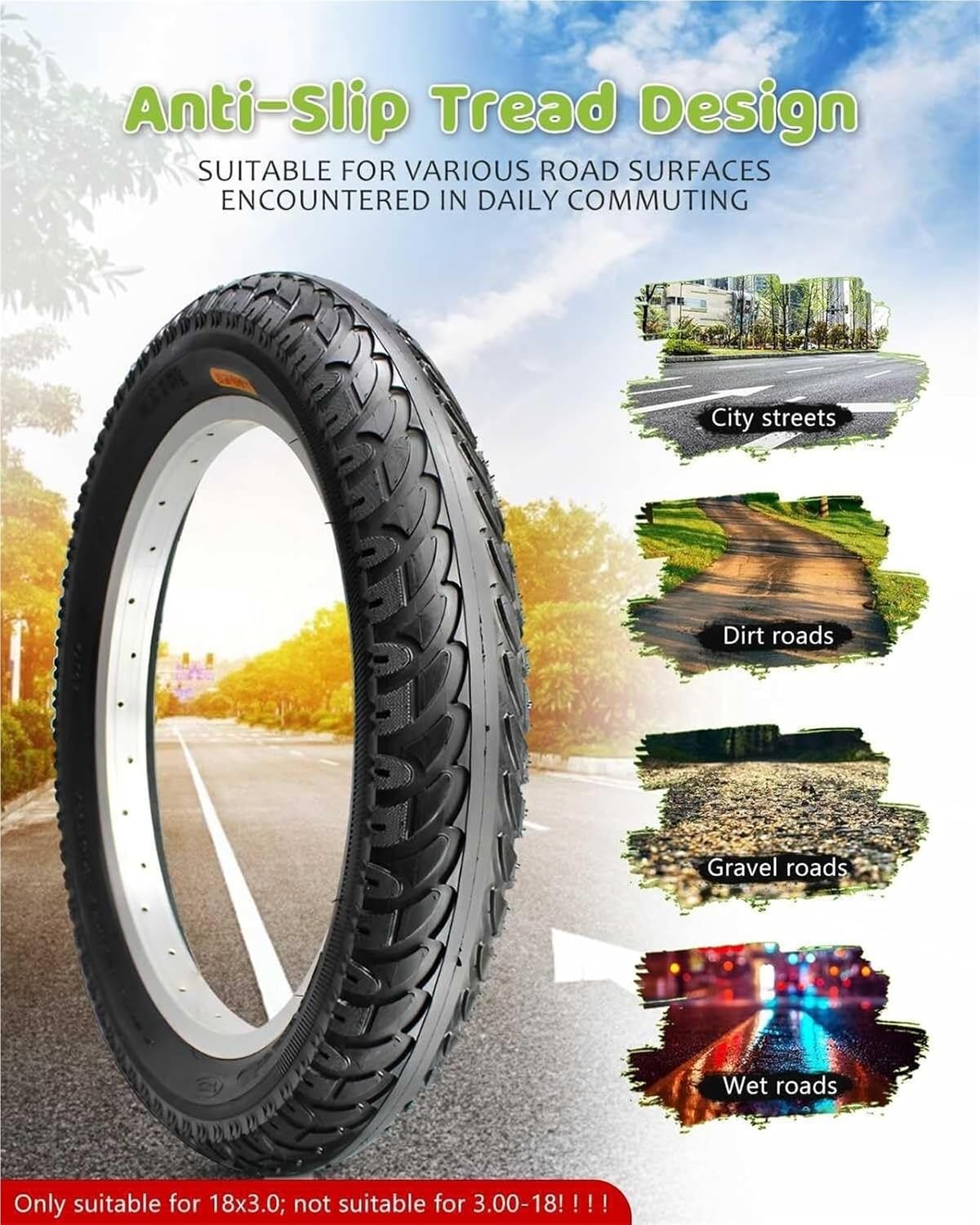 Top-Angebot: ZXCLTR 18 x 3.0 E-Bike Tyres, Puncture-proof Wear-Resistant, Tubeless Replacement Tyres for Off-Road and Off-Road Bicycle